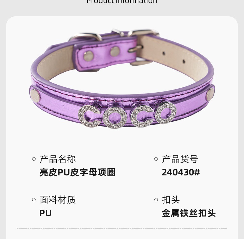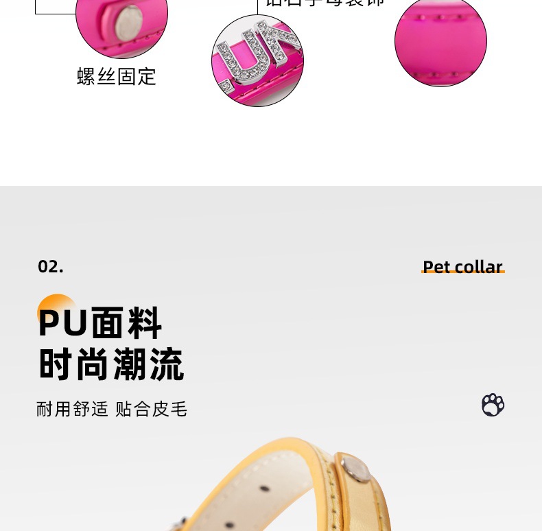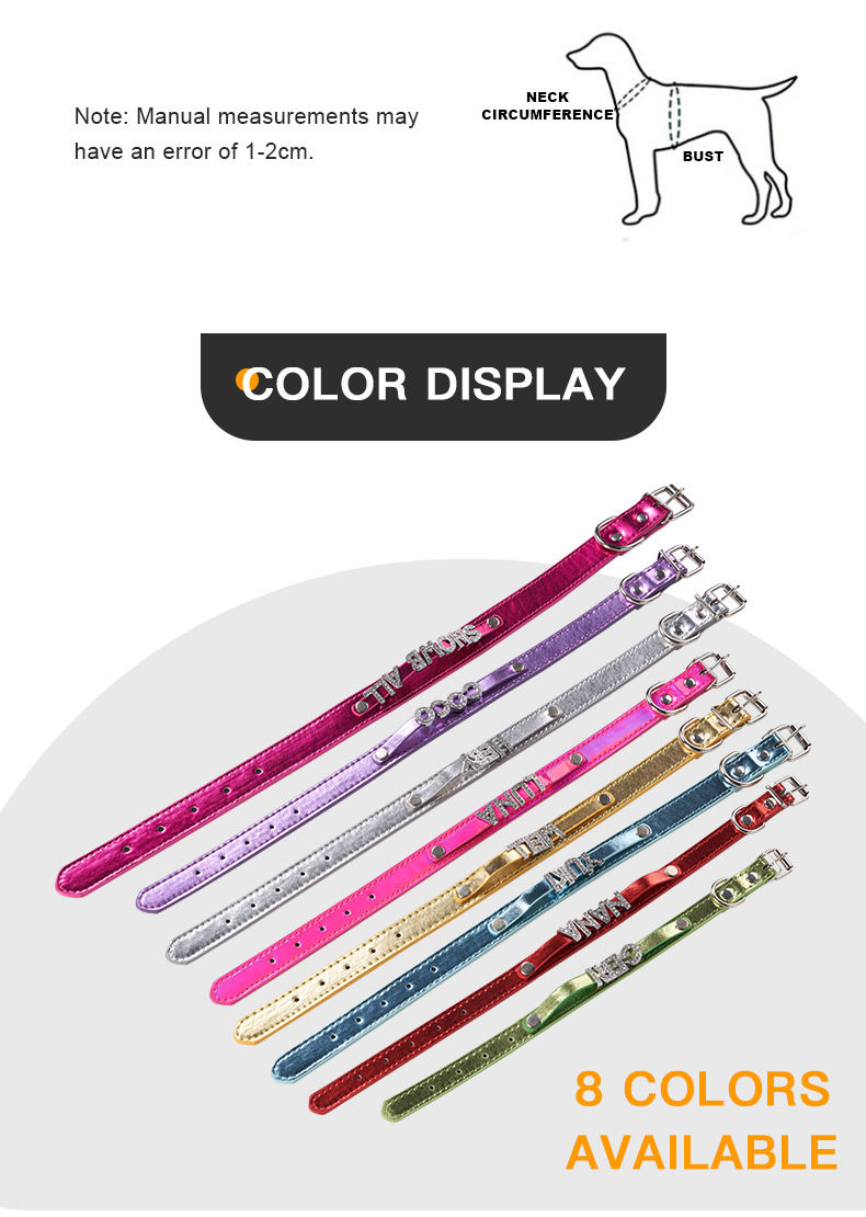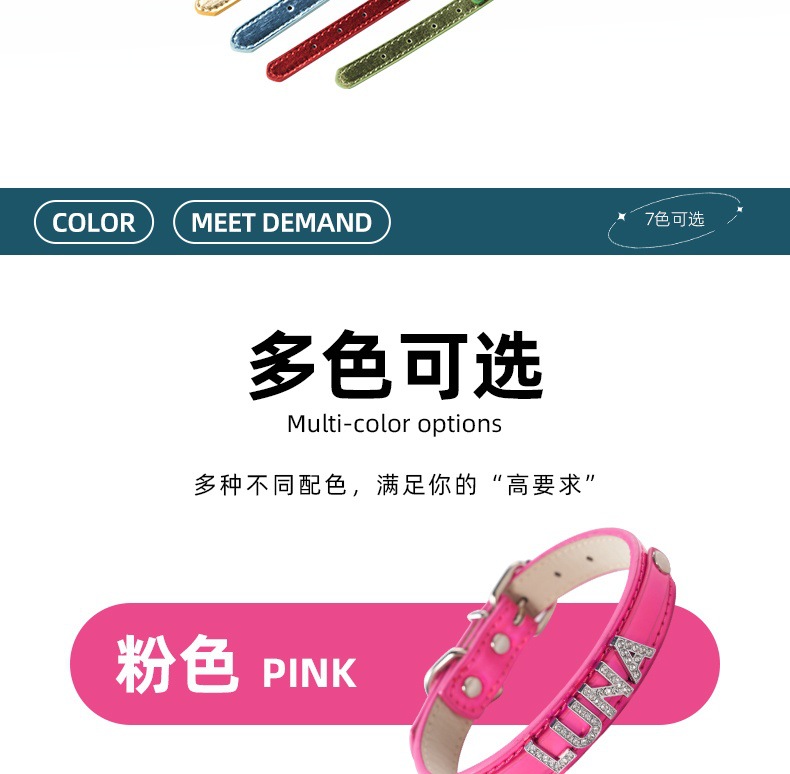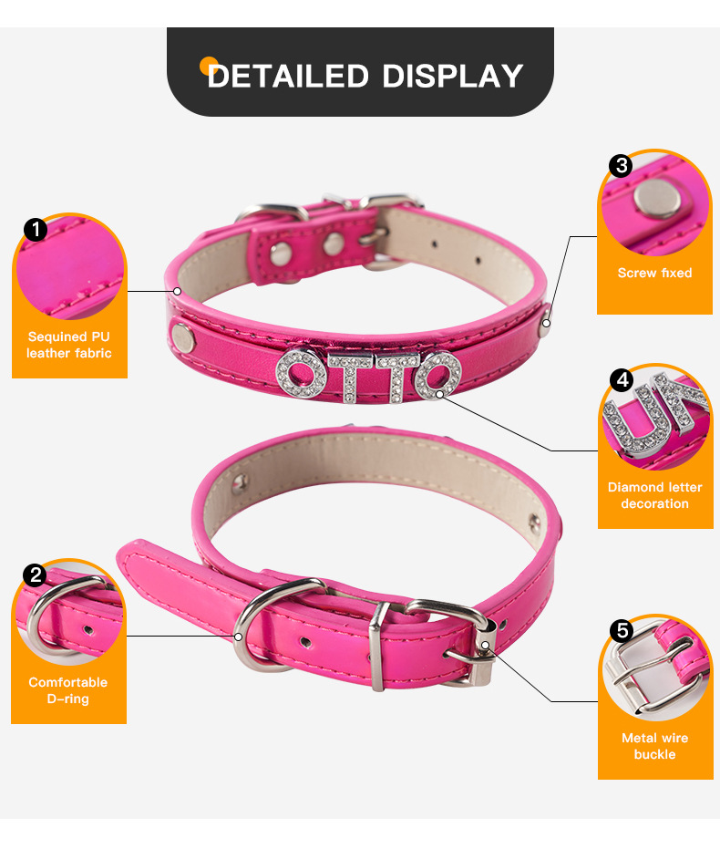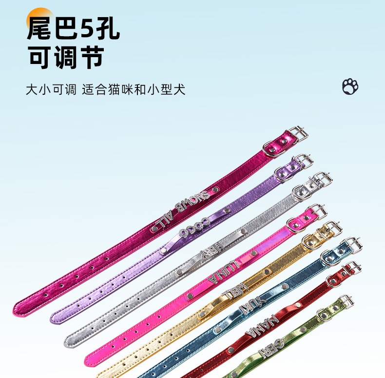 跨境DIY定制宠物项圈猫狗项圈亮片PU皮革中小型狗狗脖圈choice
