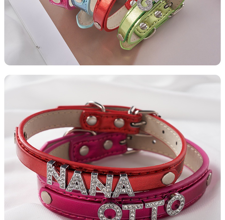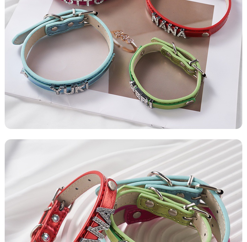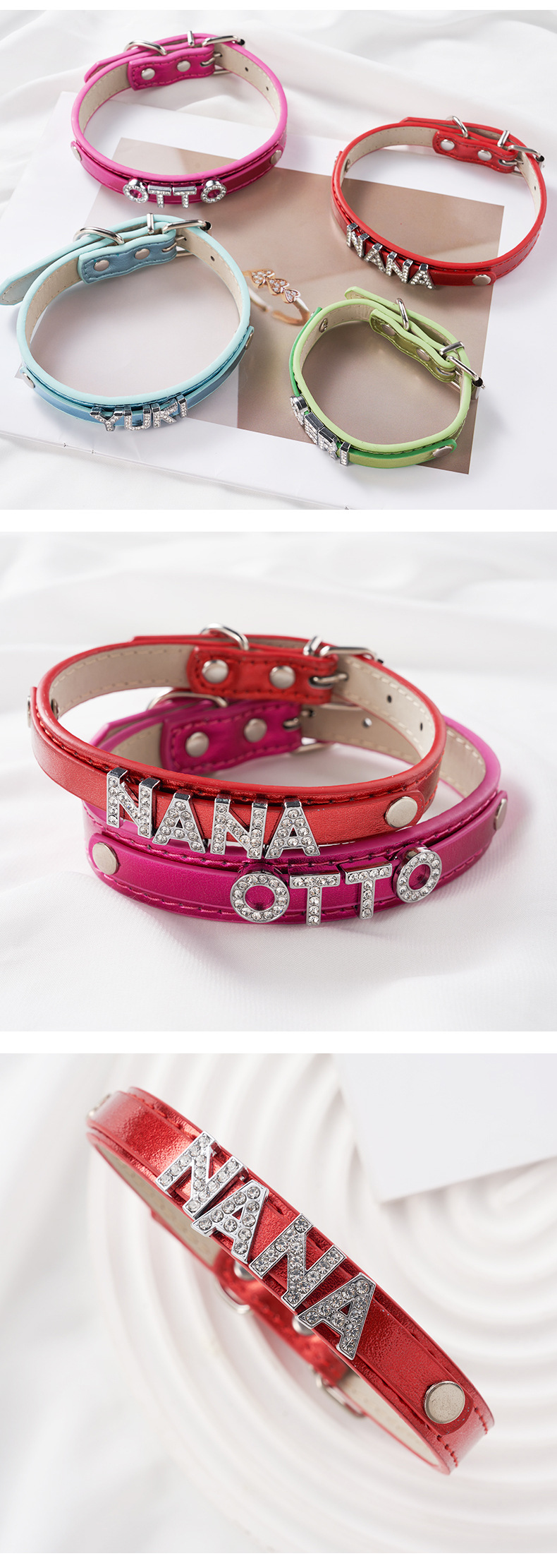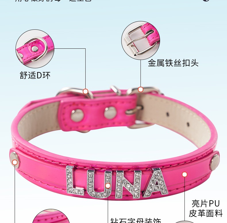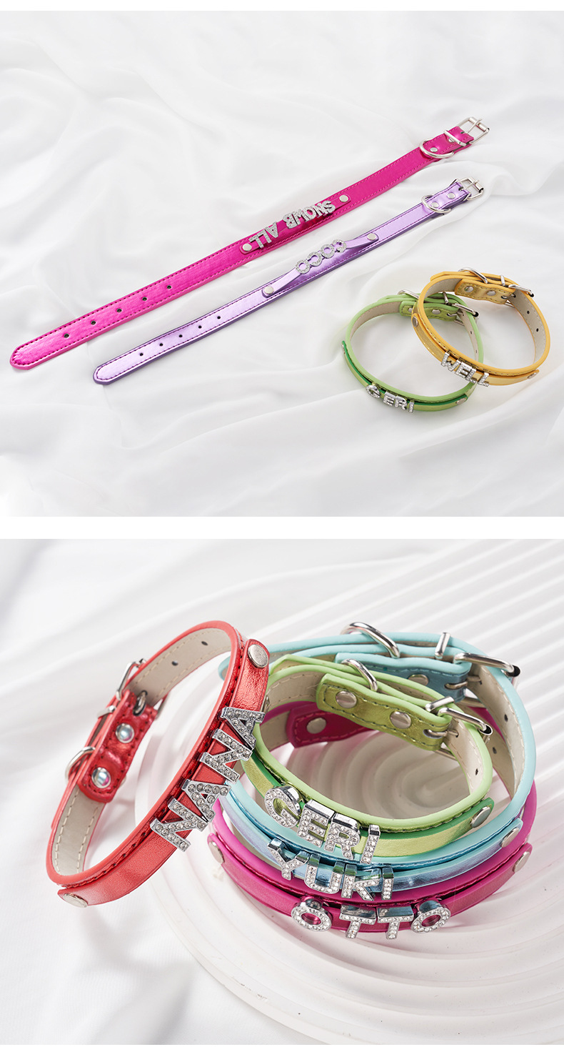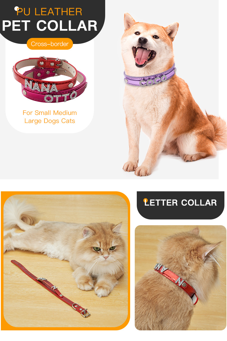 犬用首輪 ダイヤモンドDIYネームプレート付きペット首輪用品 DIY自由選択名装飾PUレザー首輪