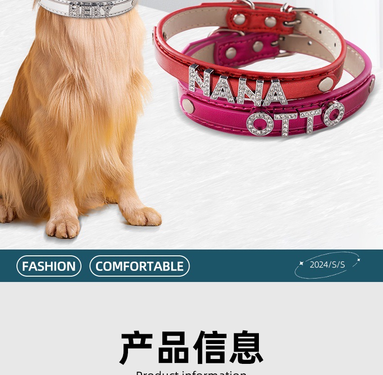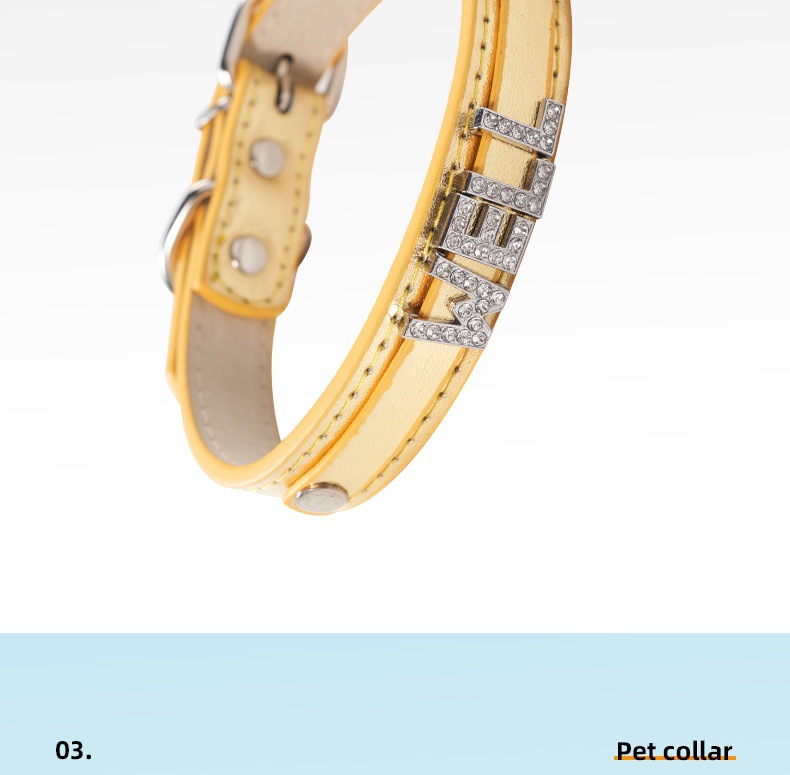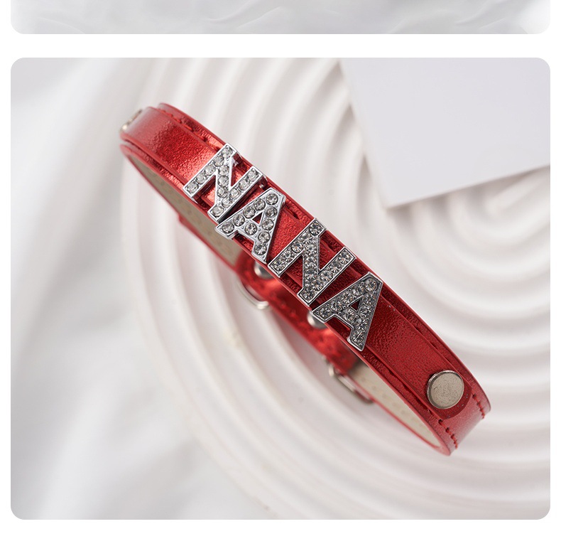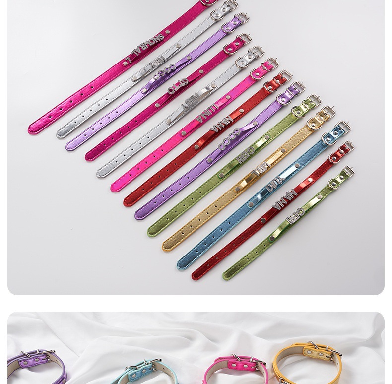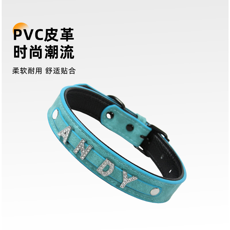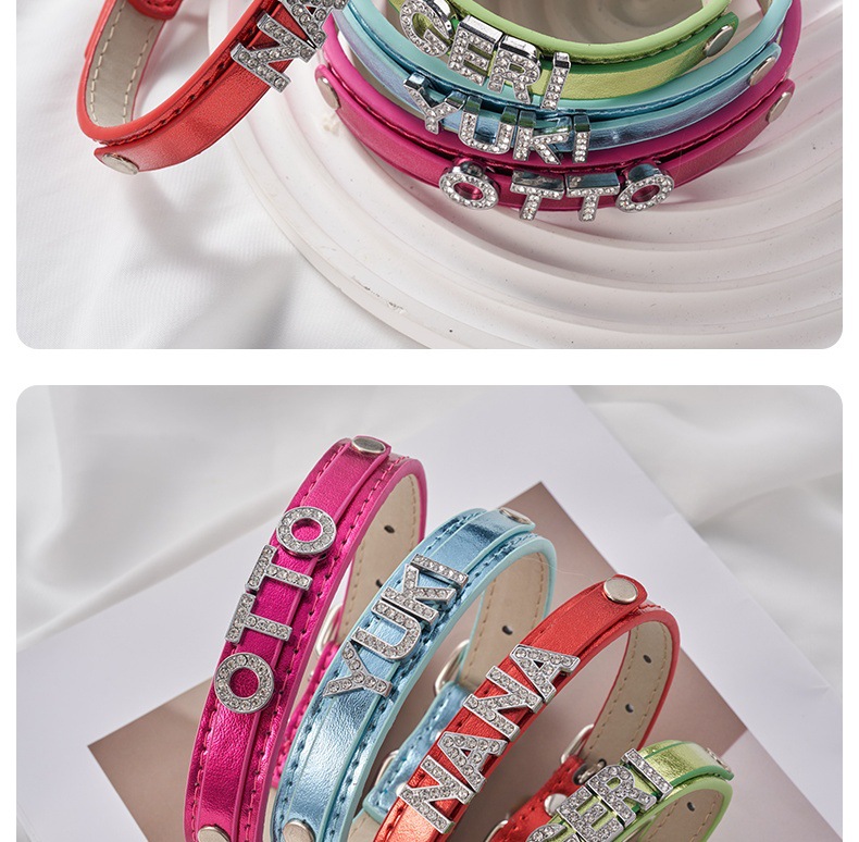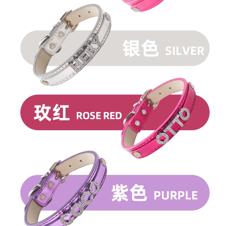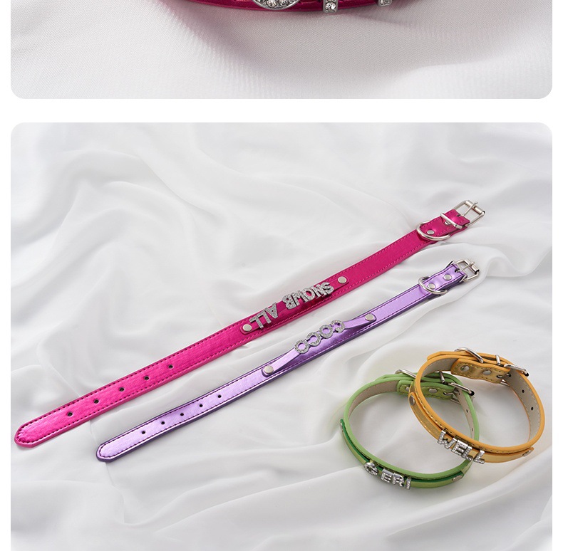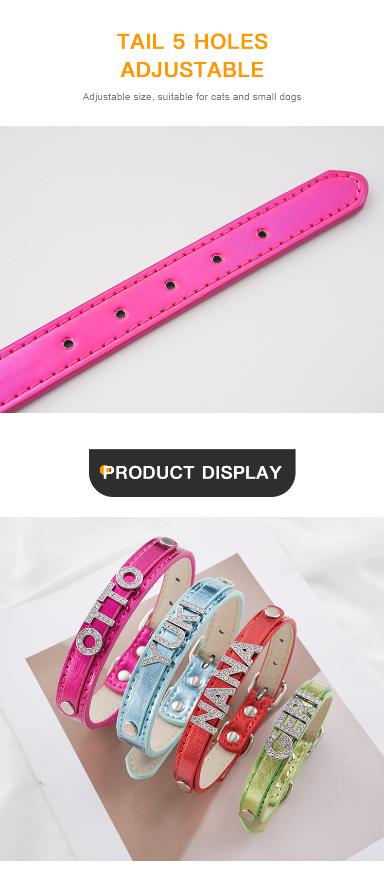 犬用首輪 ダイヤモンドDIYネームプレート付きペット首輪用品 DIY自由選択名装飾PUレザー首輪
