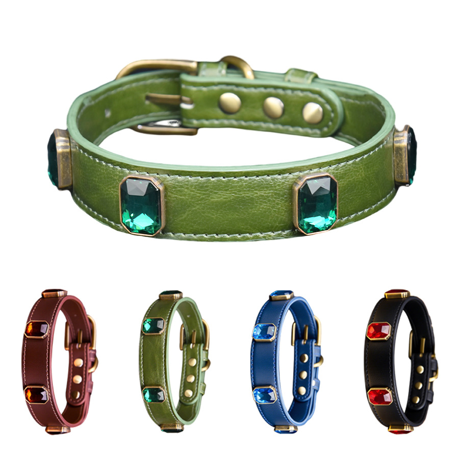 高端水钻宠物项圈复古户外狗项圈舒适皮革狗狗牵引绳亚马逊热销
