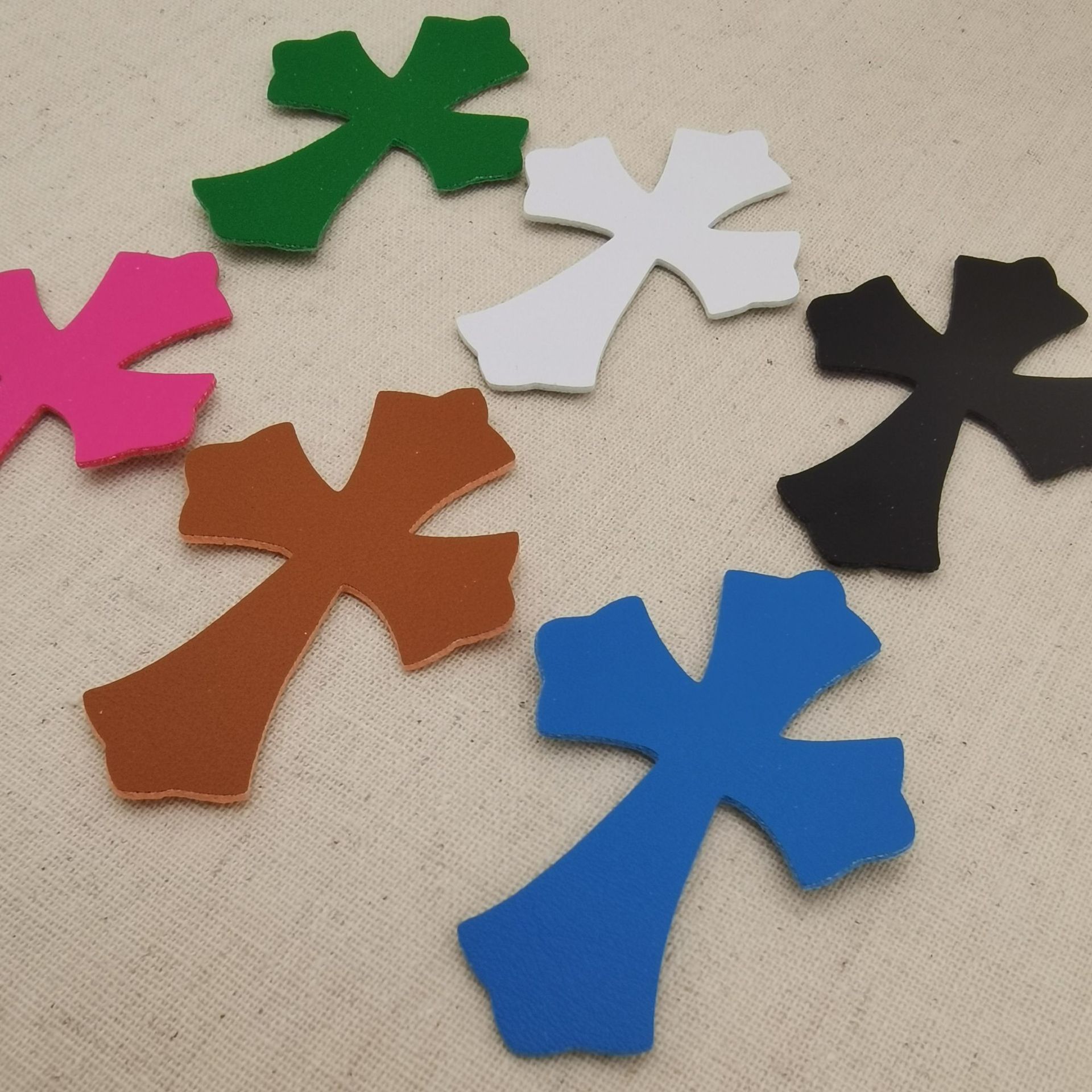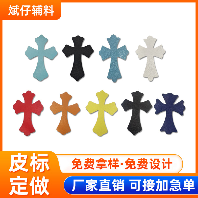 Diy彩色克罗心刺绣十字架服装辅料手工仿真皮补丁贴牛仔裤装饰标