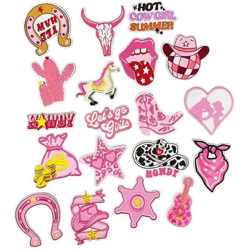 ピンクウエスタンカウボーイ刺繍布ステッカーカウガール服装飾パッチステッカーサボテン牛頭刺繍クロスボーダー