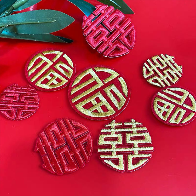 双喜刺繍布パッチ、結婚証明写真、シャツ装飾パッチ、中国風招待状パッチ、国潮風