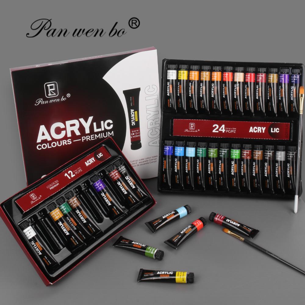 箱入り水彩 12 ミリリットル大型缶学生 24 色アクリル絵の具絵画ペイントアートプロの絵画用品
