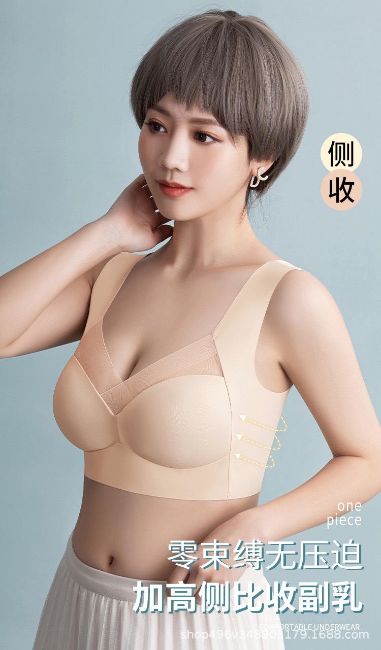 莎莎跨境无痕无钢圈美背文胸聚拢调整型收副乳上托大胸显小内衣