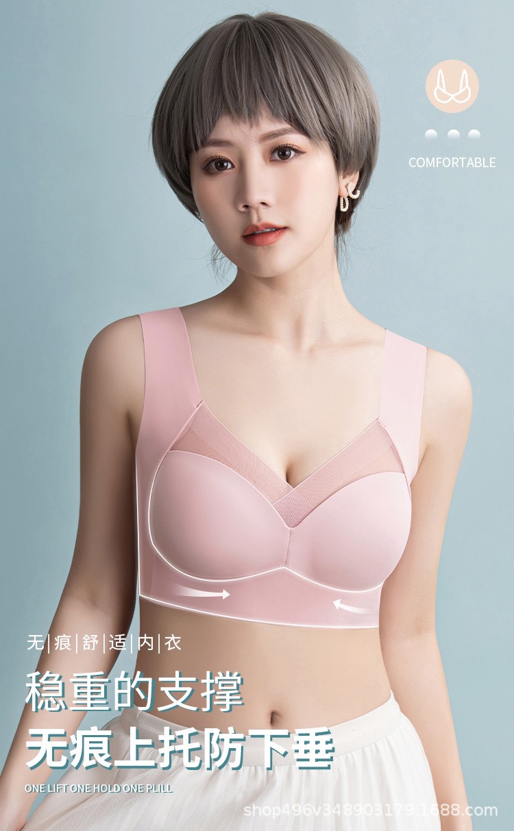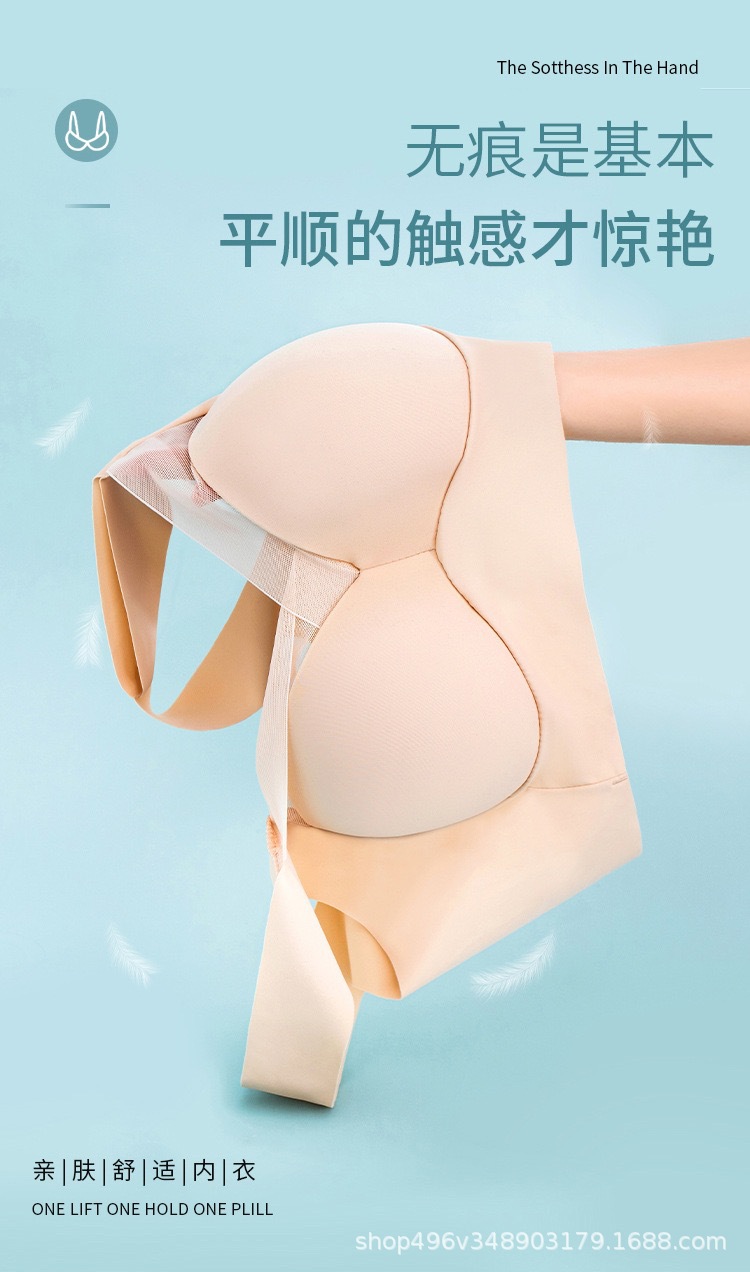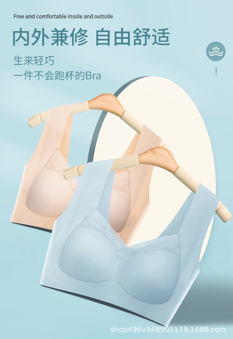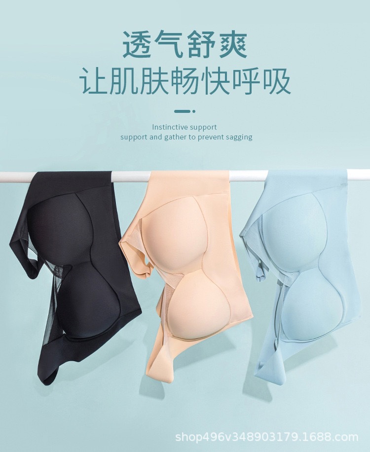 果冻条无痕软支撑美背内衣聚拢收副乳防下垂无钢圈文胸罩带胸垫