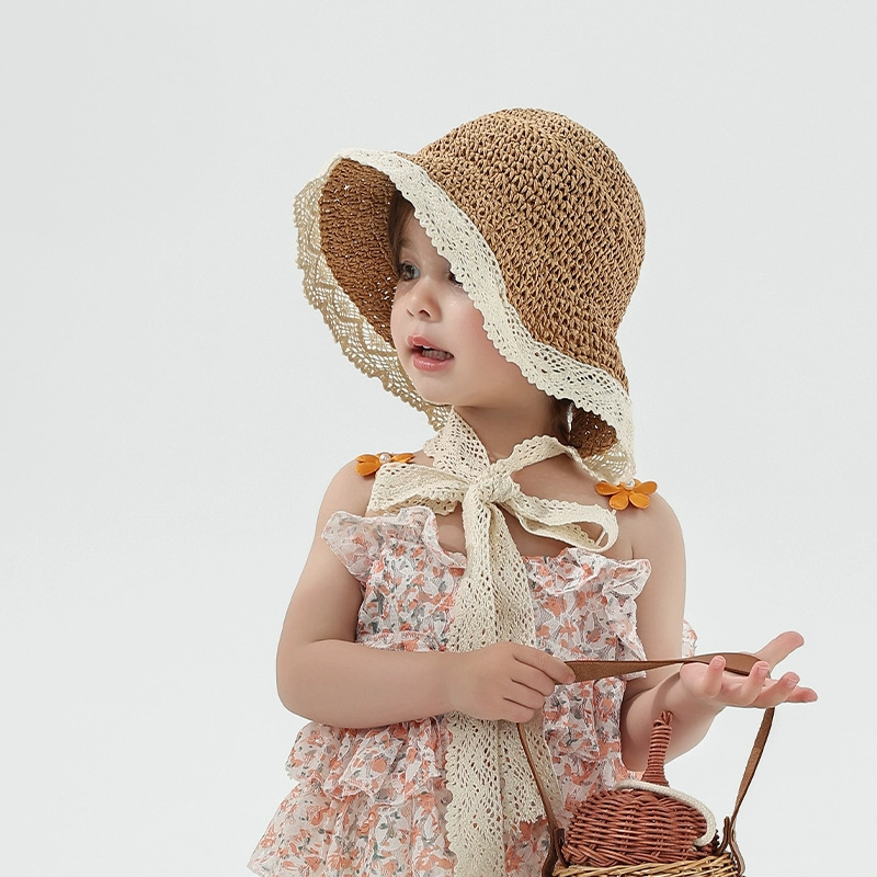 子供の麦わら帽子の女の子の赤ちゃんの帽子親子の日よけの帽子のビーチ帽の王女の春の夏の日よけの女の子の赤ちゃんの日よけの帽子