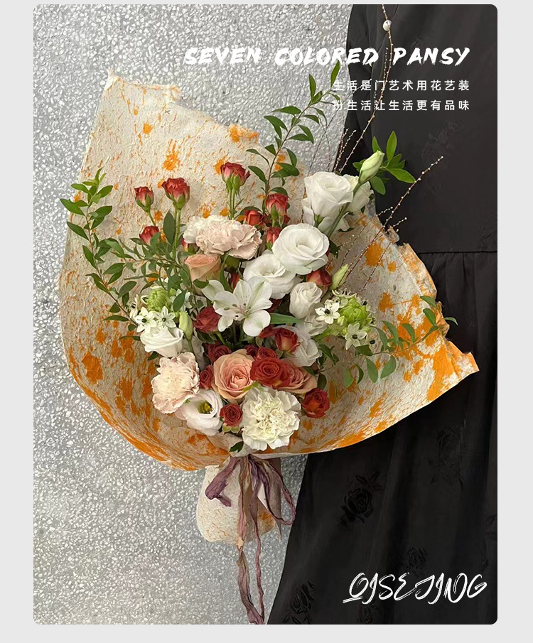 七色すみれ熙夢花園油絵風包花紙花芸包装高級感牛皮プレゼント花包装紙