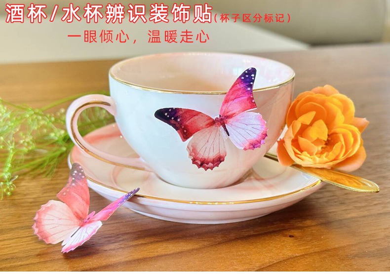 パーティー用品ins唯美蝶杯識別装飾貼付パーティーカップ識別シーン配置貼付
