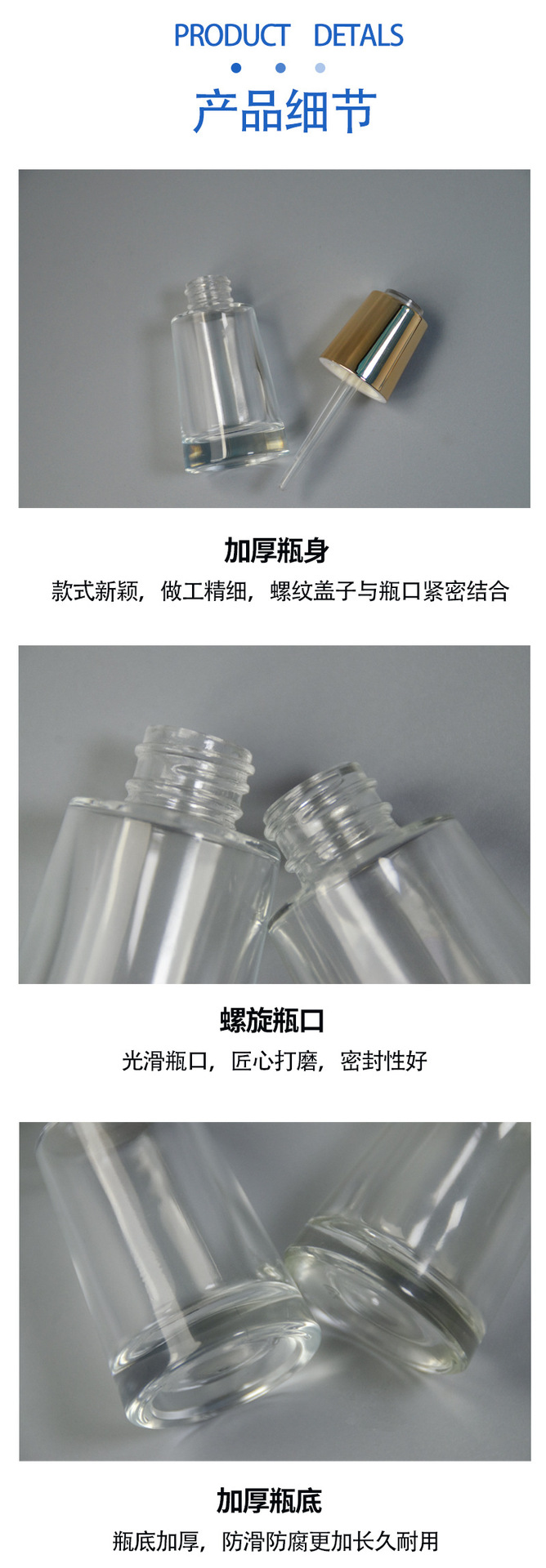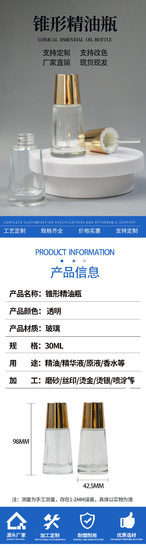 メーカー現物30mlテーパー精油瓶透明ガラス滴管精華液瓶化粧品分注瓶