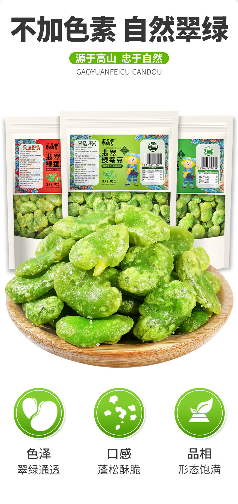 農科院雲南保山緑心蚕豆弁翡翠蚕豆無殻香ショートニングマスタード味蘭花豆レジャースナック