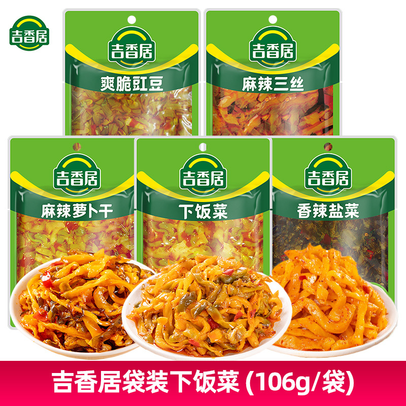 吉香居搾菜あっさり小袋麻辣大根乾搾菜糸小包装朝食おかず漬け物キムチ30g