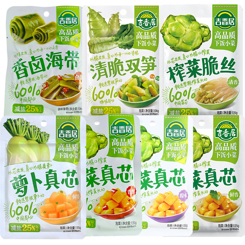 吉香居搾菜真芯新鮮な香り135g辛くない搾菜漬け物柔らかい四川キムチ菜芯朝食ご飯