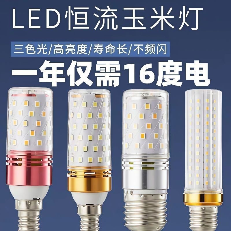 LED電球トウモロコシランプe 14小ねじ口e 27ねじ省エネランプ家庭用超明るい三色変光シャンデリア光源