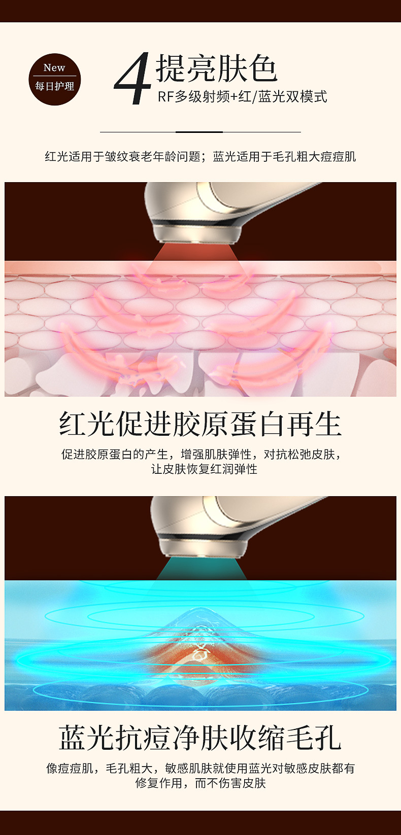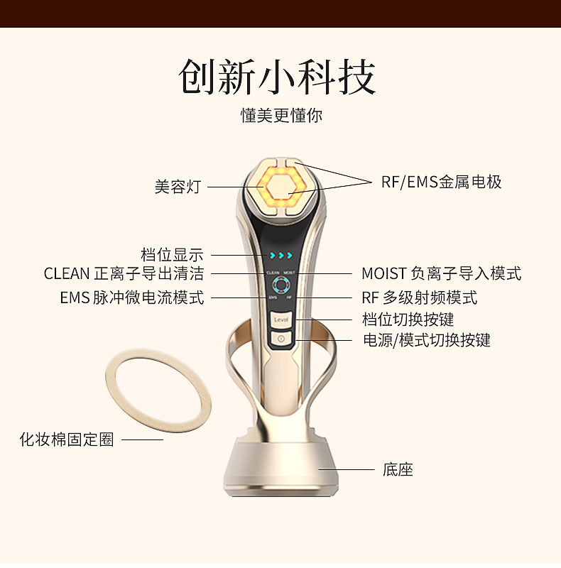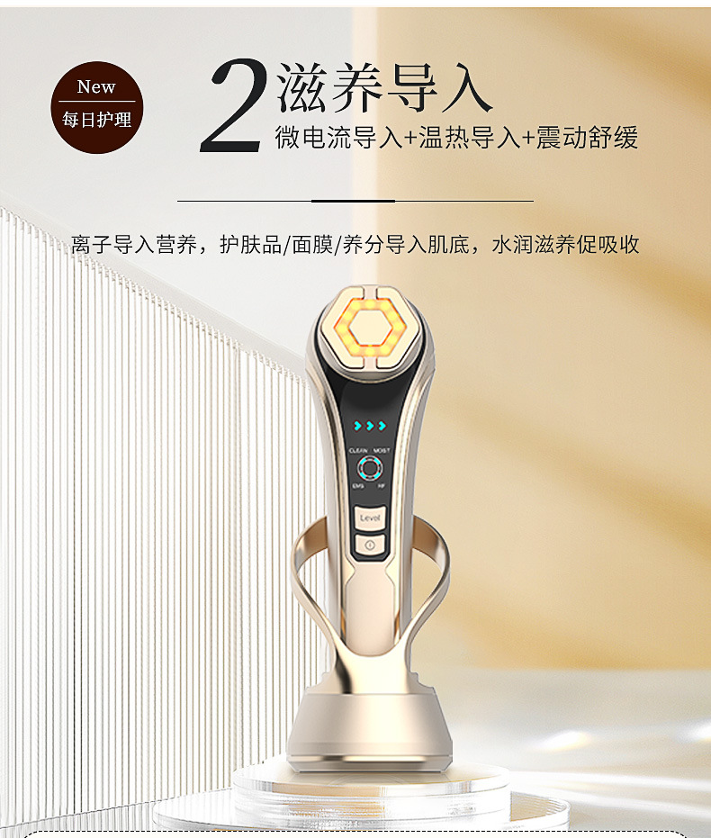 クロスボーダーフェイシャルティラー美容機器振動冷温敷赤光RF清潔水光emsマイクロ電流導入器