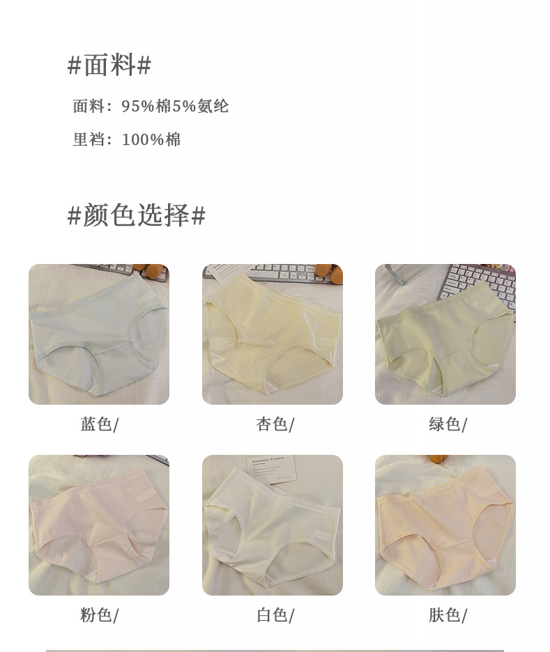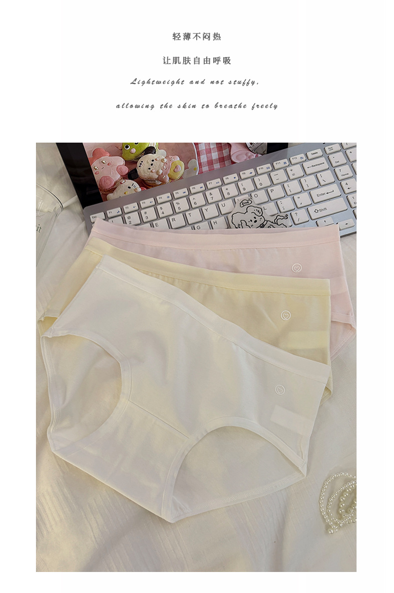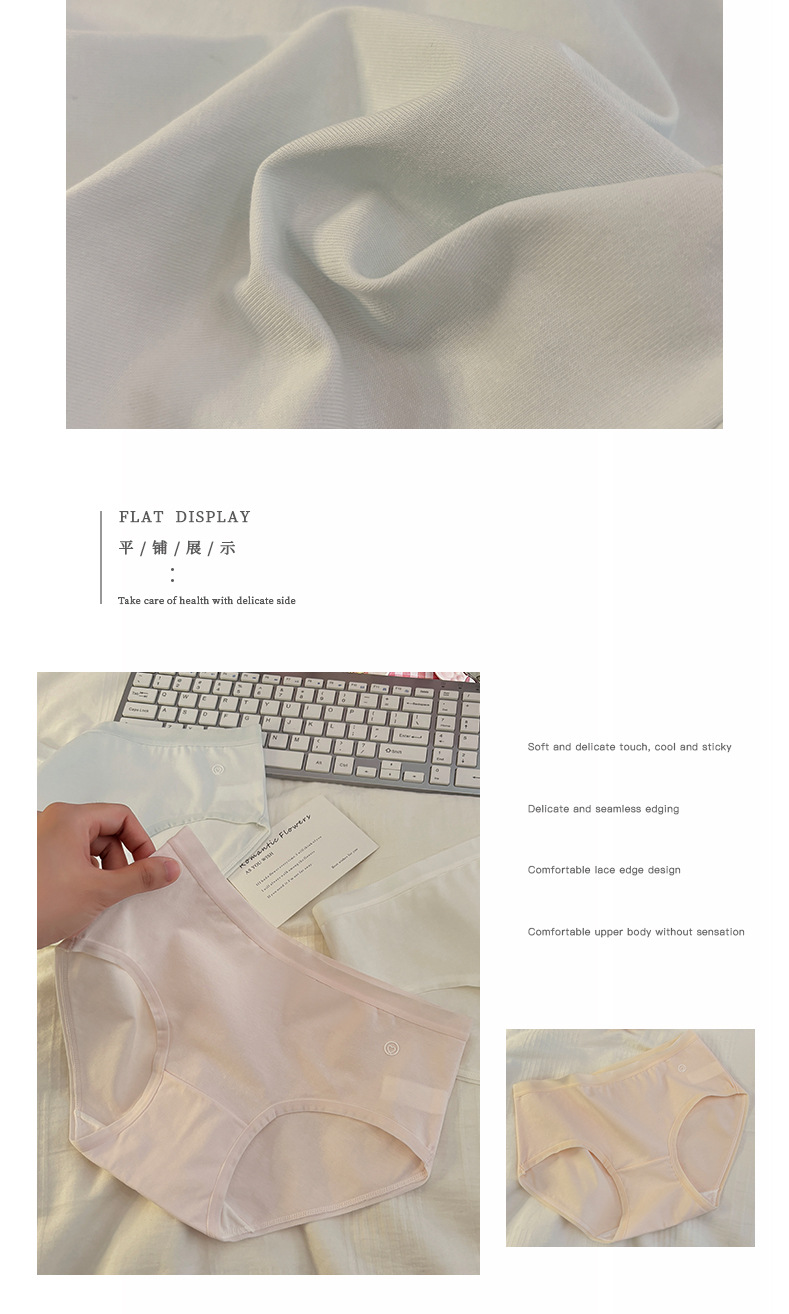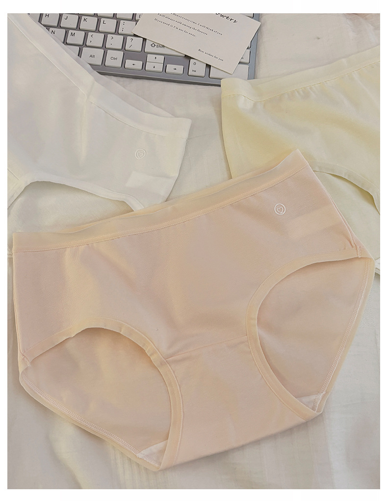 10Aグレードのミニマリスト風インスタイル無地コットン通気性抗菌女性用下着、ミッドウエストヒップカバー女子三角パンツ