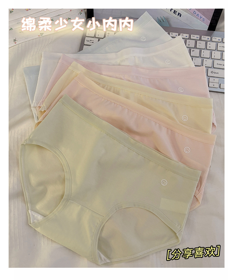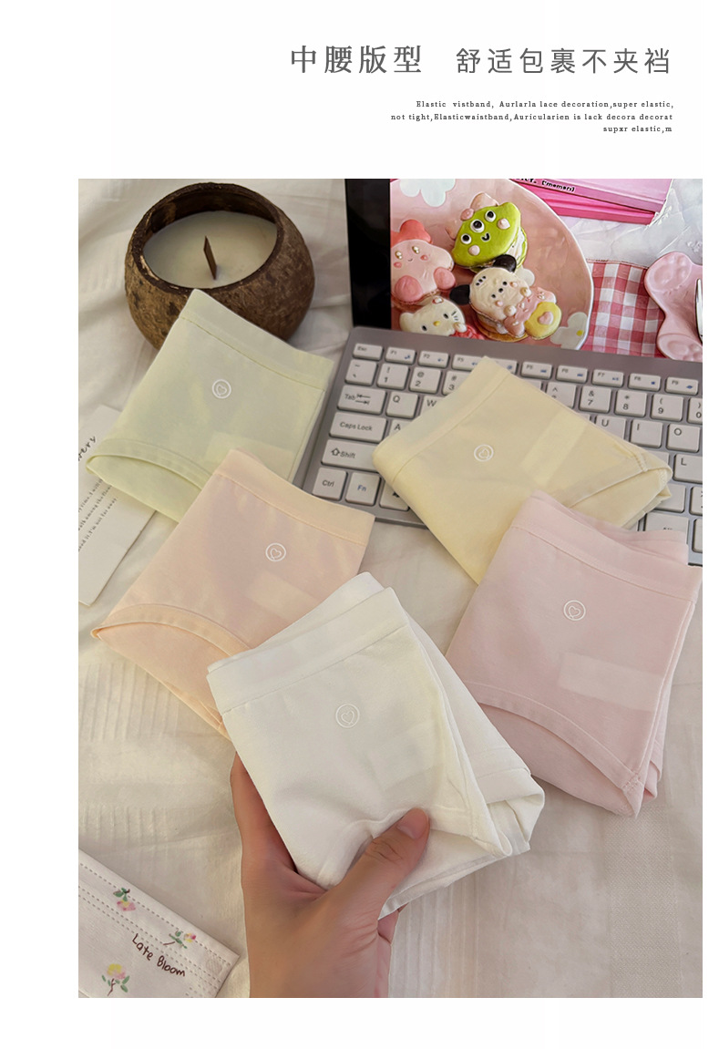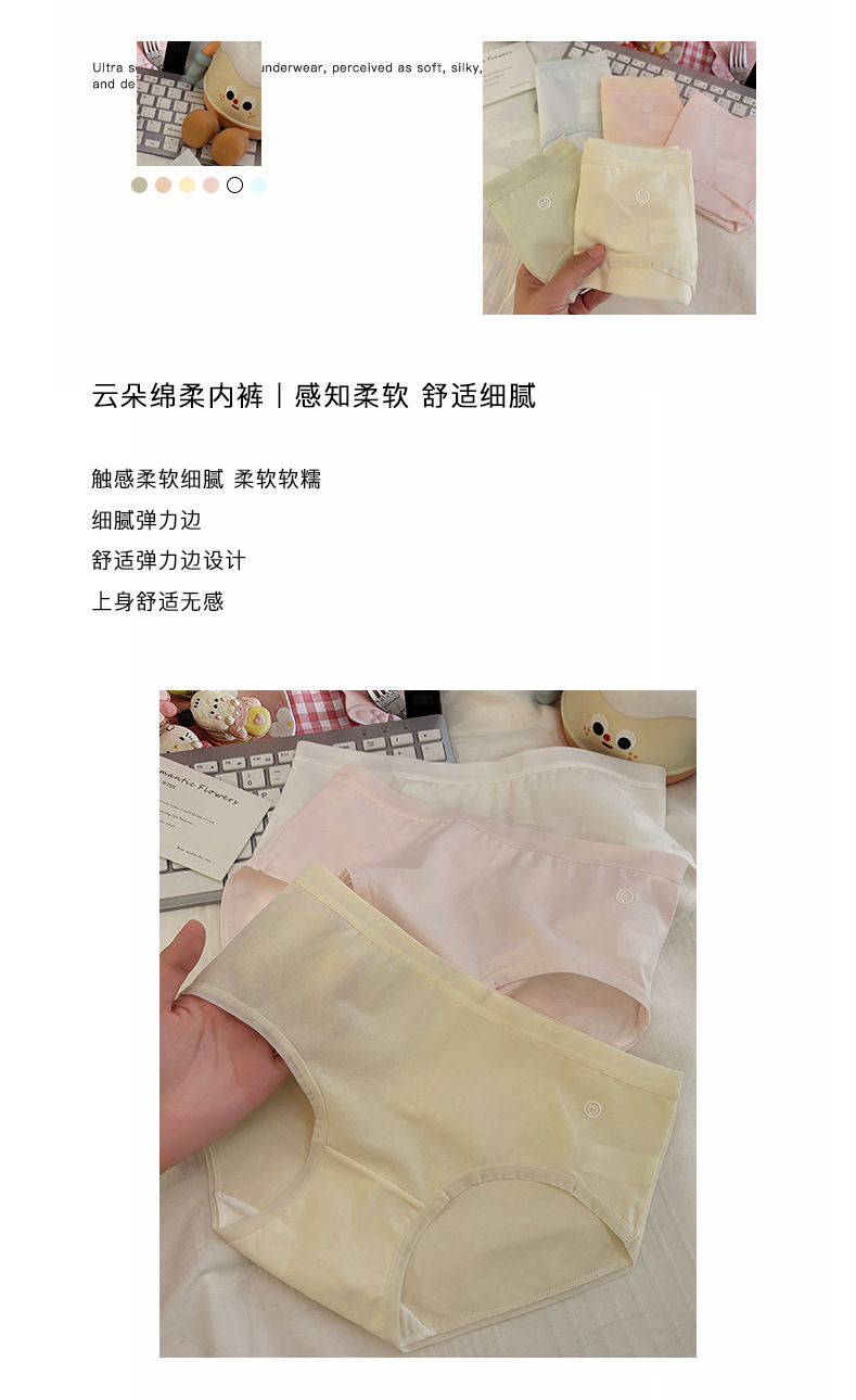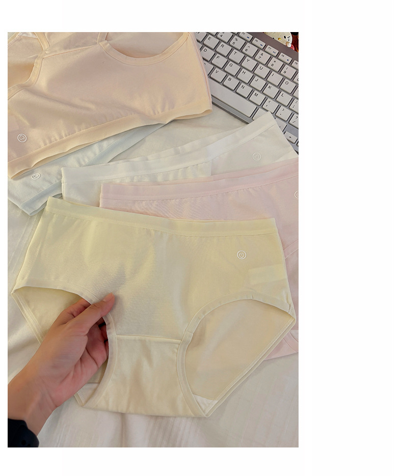 10Aグレードのミニマリスト風インスタイル無地コットン通気性抗菌女性用下着、ミッドウエストヒップカバー女子三角パンツ