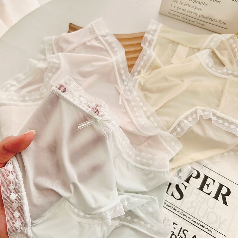インス風スイートリボン付きミッドウエストヒップカバー女性用下着、柔らかく通気性のある三角パンツ、10A抗菌純綿クロッチ