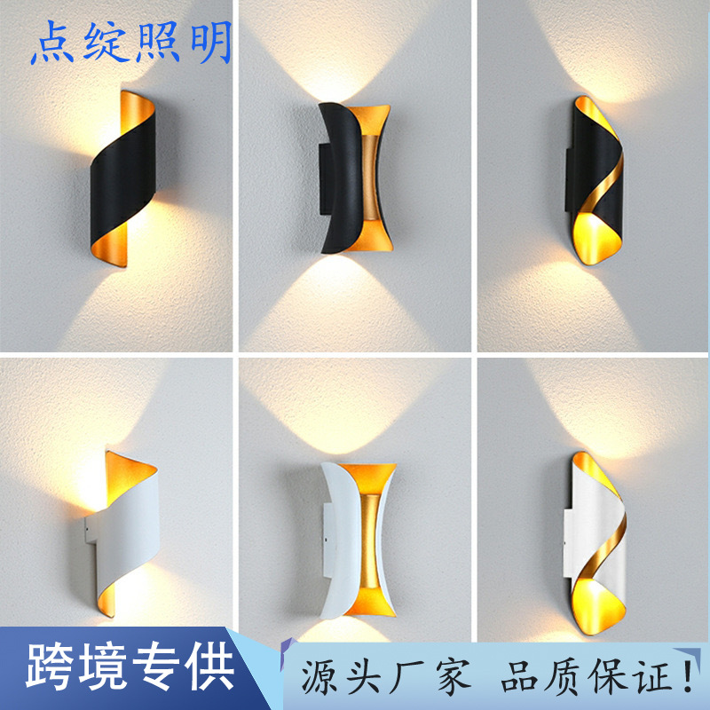 国境を越えたアマゾン屋外防水庭灯壁灯小蛮腰黒金上下発光アルミ材外壁灯