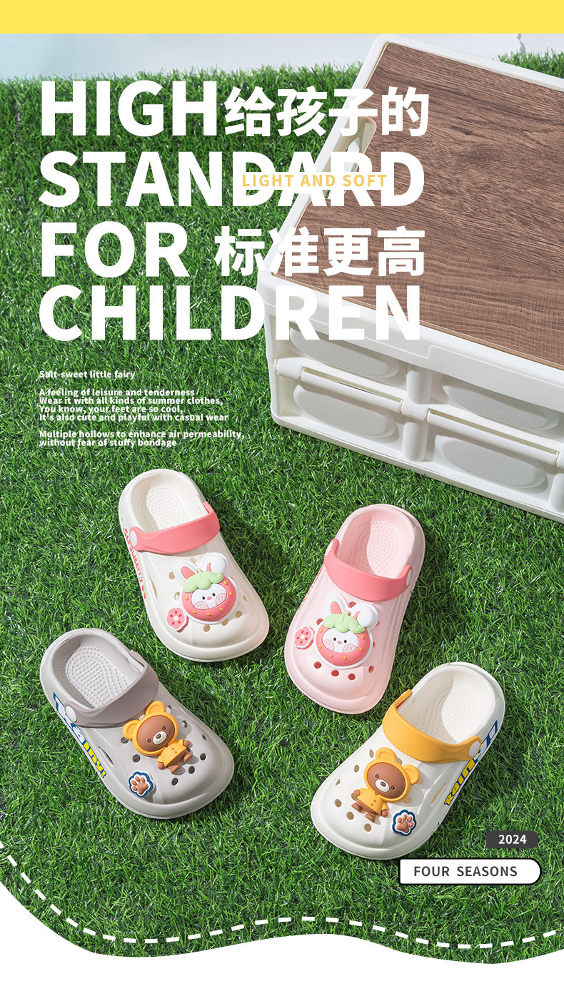 2024新型穴滑り止めかわいい柔らかい底の男女児童スリッパ漫画包頭乳幼児家庭サンダル
