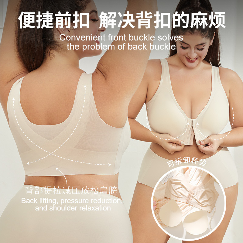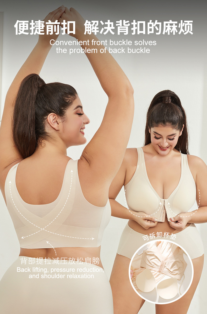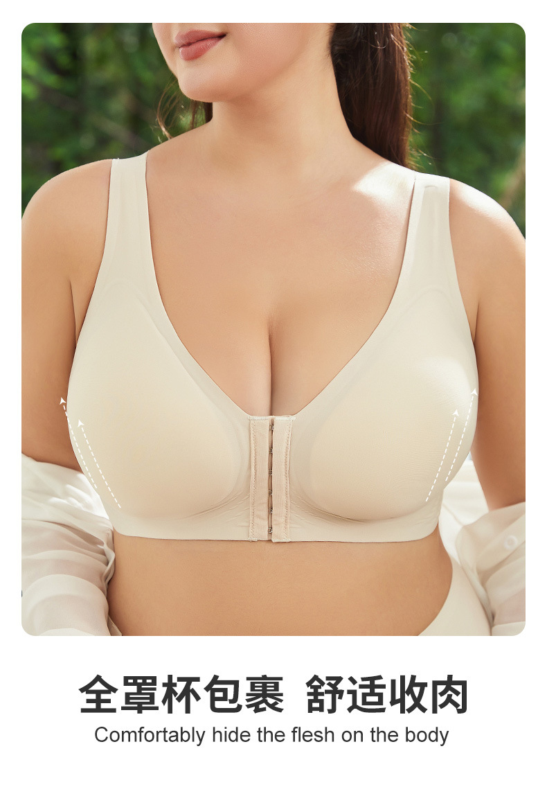 クロスボーダー前ボタン無痕大コード下着女性200斤無鋼輪が集まって垂れ下がるのを防ぐ副乳調整型ブラジャー