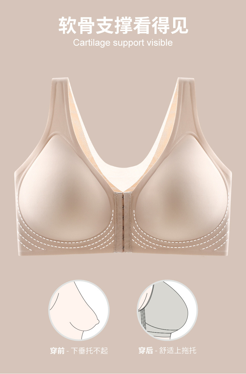 クロスボーダー前開きブラジャー 女性用 シームレス 美背 補正ブラ ノンワイヤー 垂れ防止 プッシュアップ 調整ブラ 欧米風ファッション