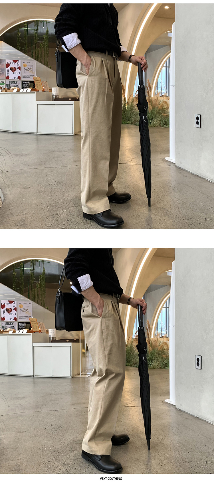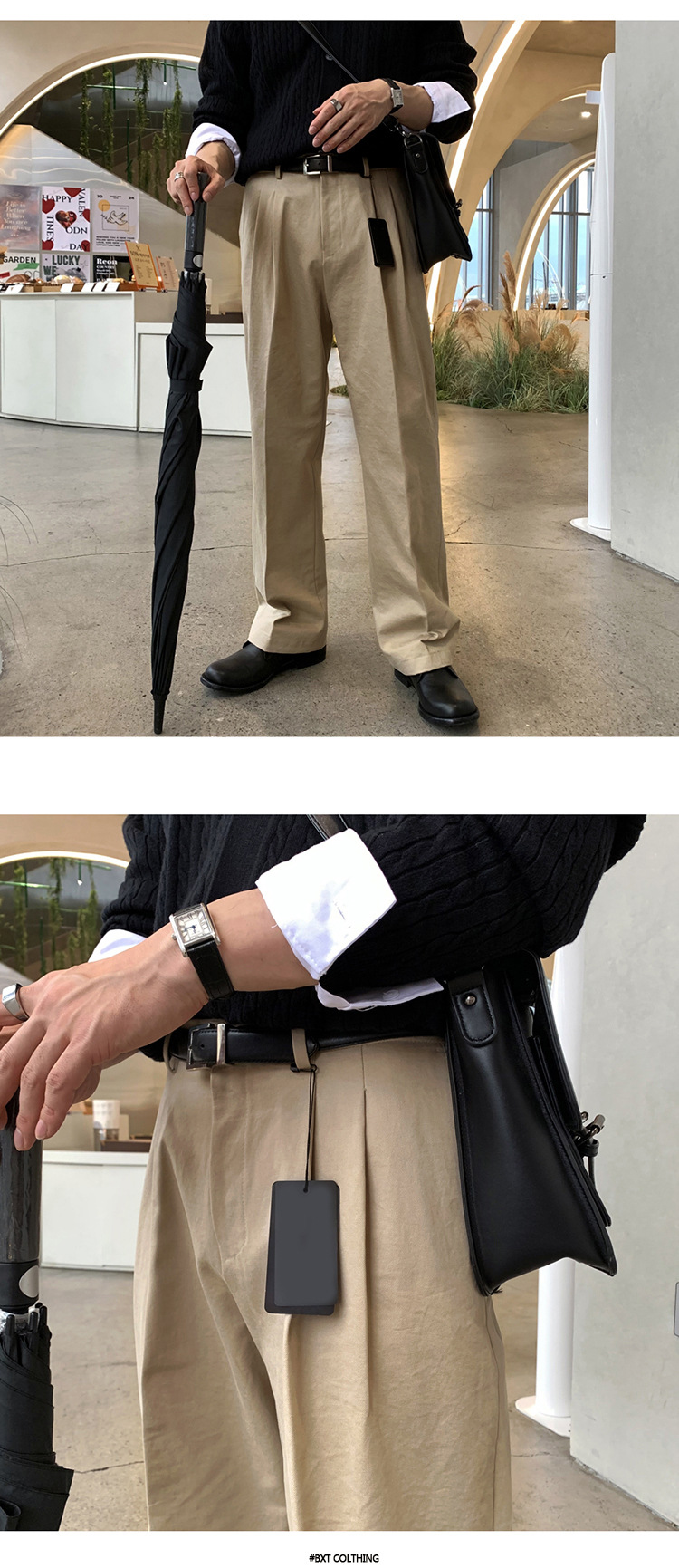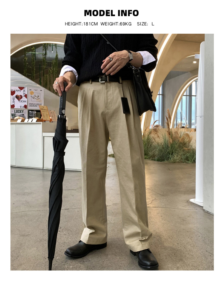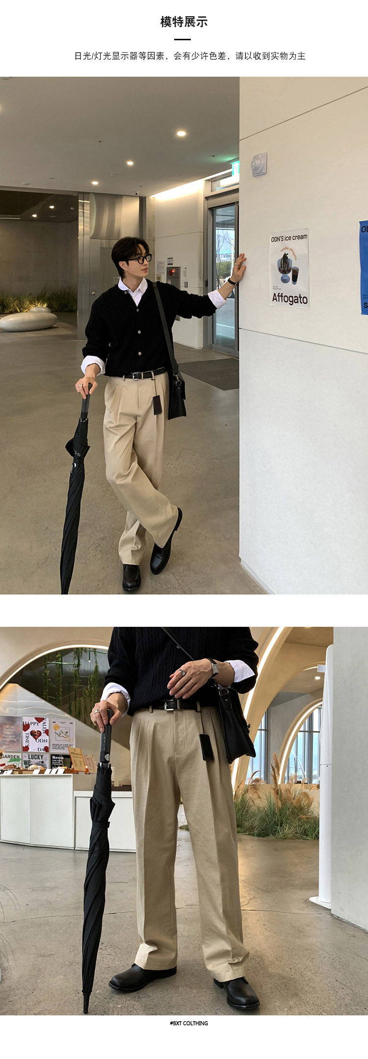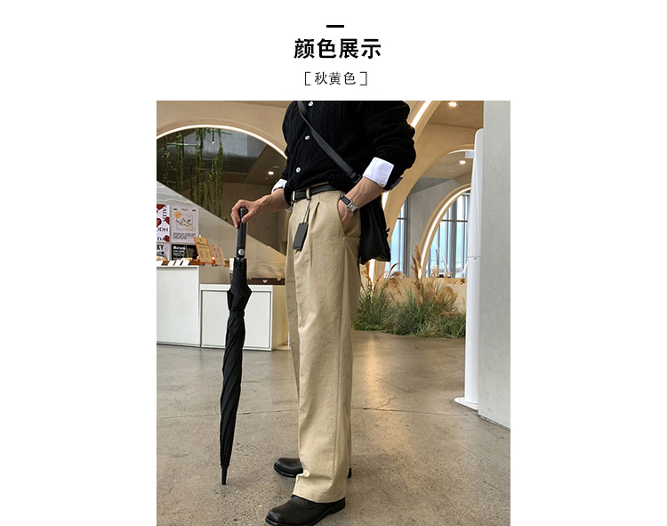 ASCLO棉质秋季韩版宽松褶皱阔腿裤简约时尚高街ins直筒休闲裤潮男