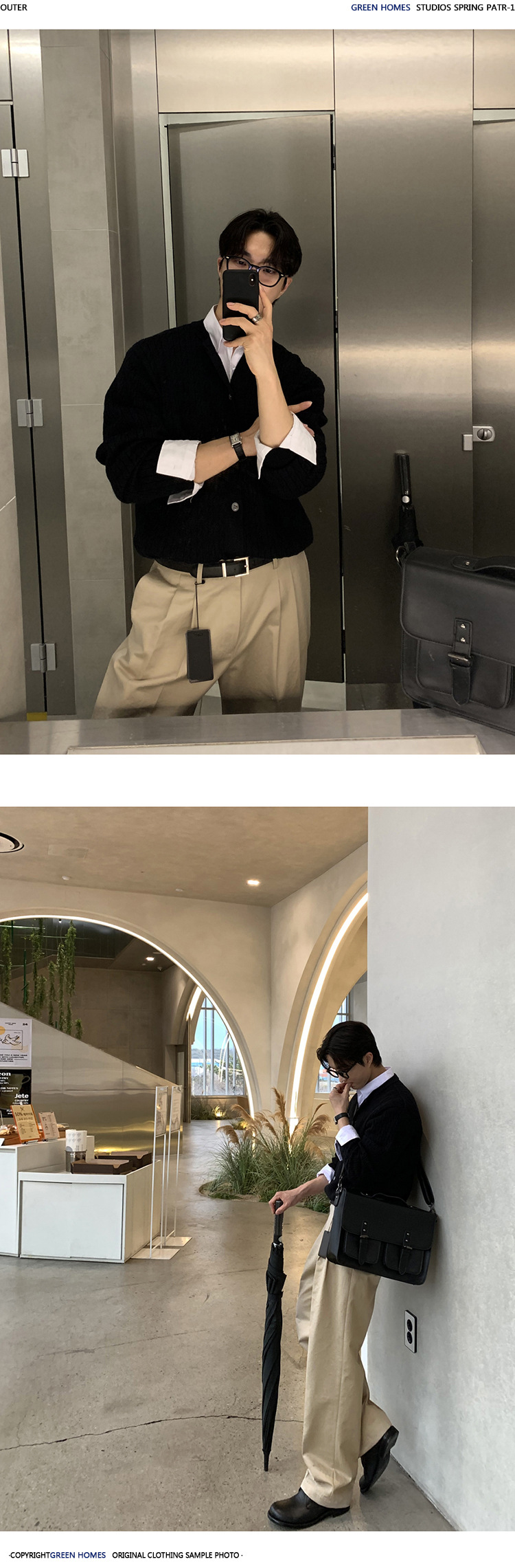 Asclo薄手ニットカーディガンジャケット韓国版トレンドins丸首セーター男性カジュアルゆるい高級感上着