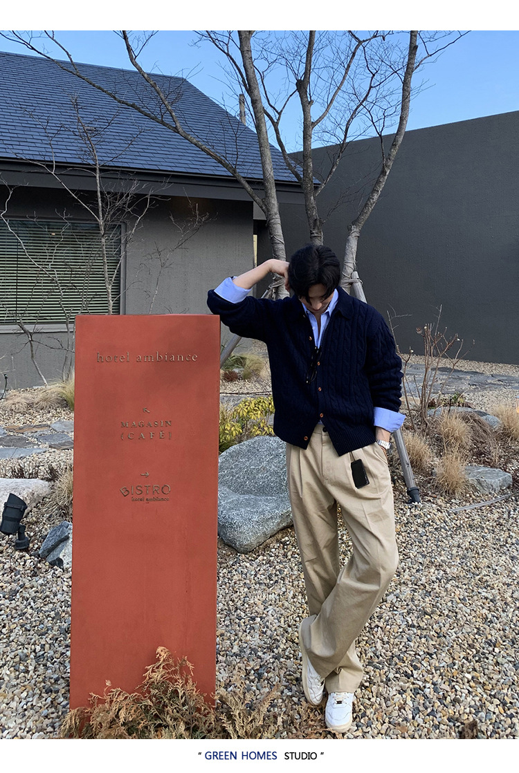 As清河韓系男性ニットカーディガン春の新作百合小衆デザイン麻模様高級セーターカジュアル