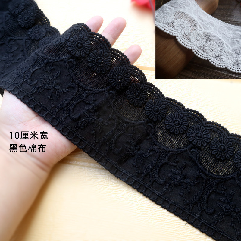 10センチ幅の黒い白い純綿布刺繍レース服スカートの裾に襟元を長くした服装補助材料