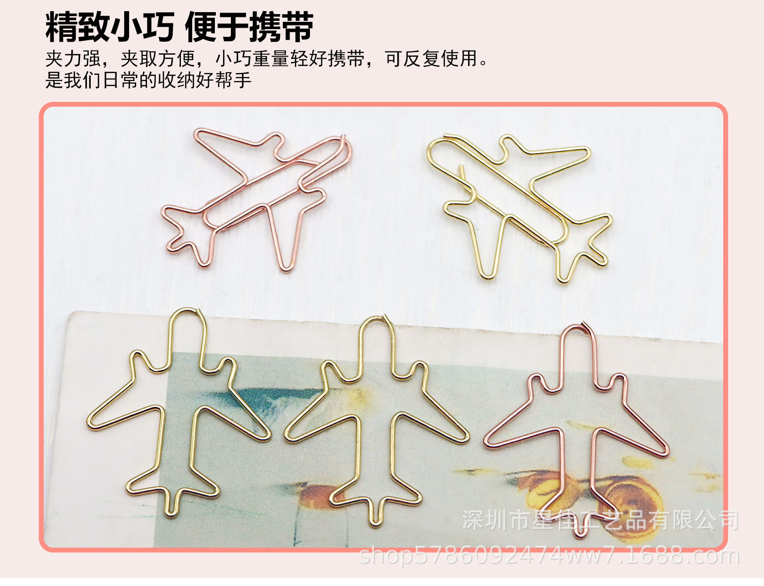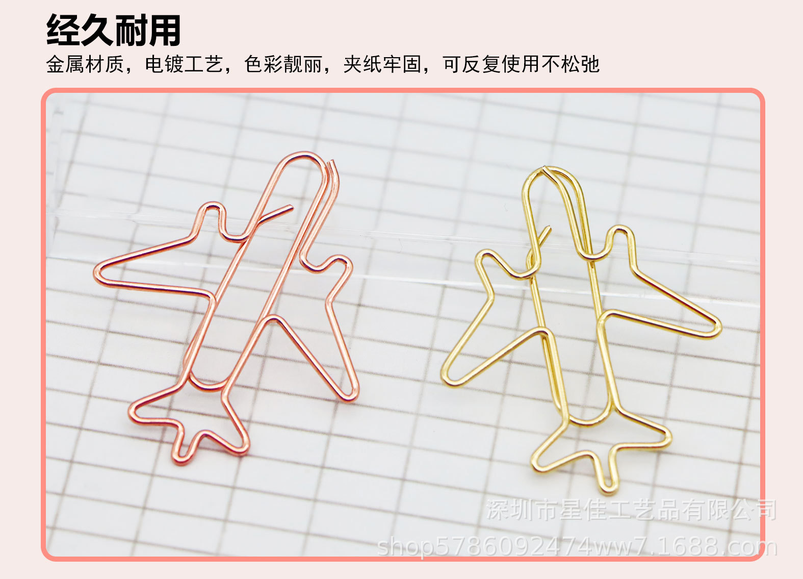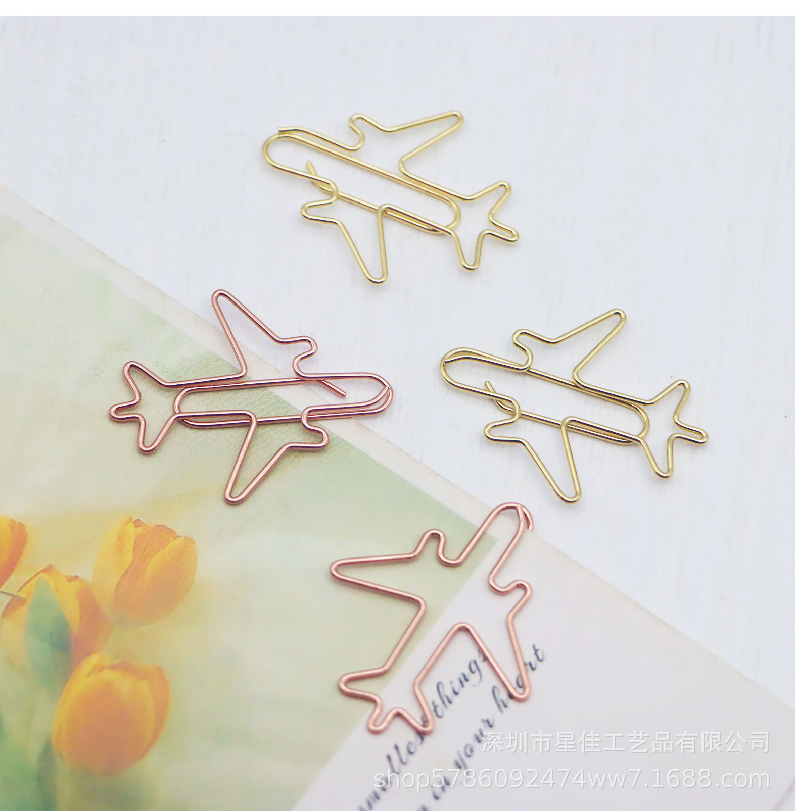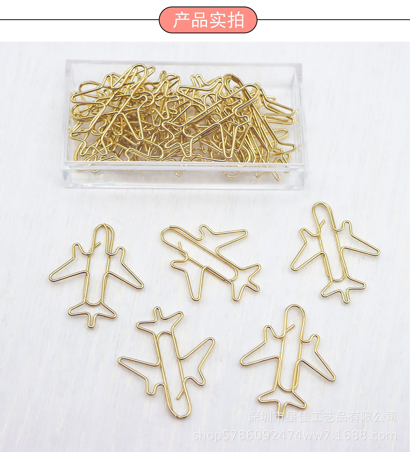 星佳メーカー創意交通機関飛行機クリップ異形クリップメッキ金色ブックマークファイルホルダー