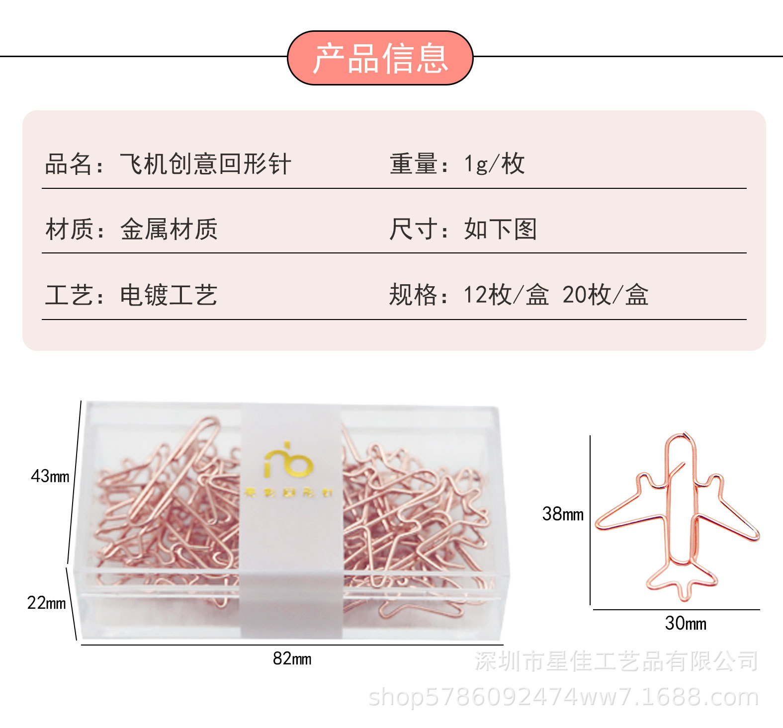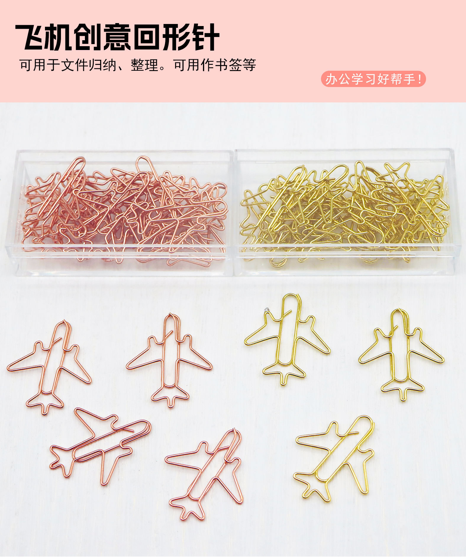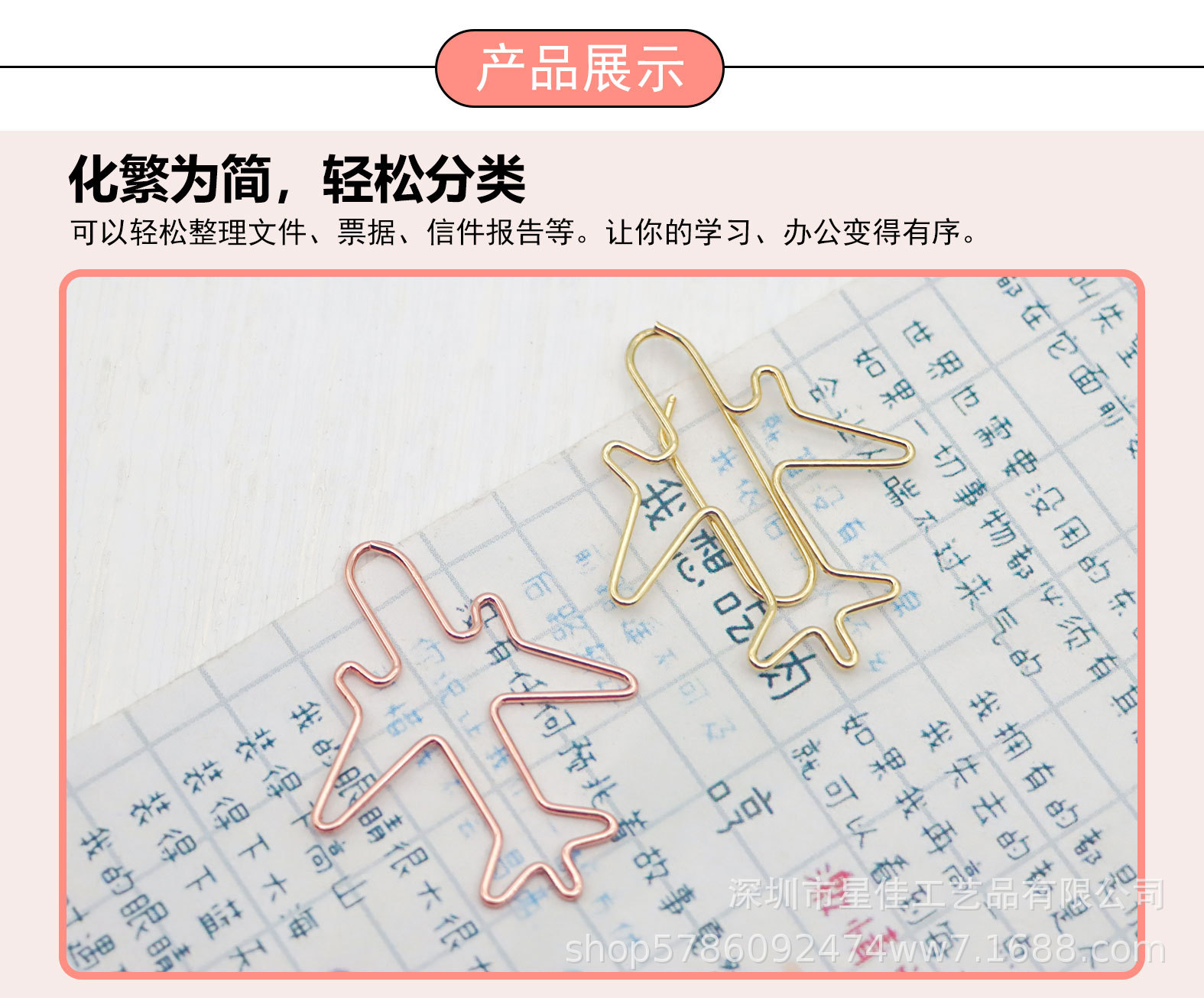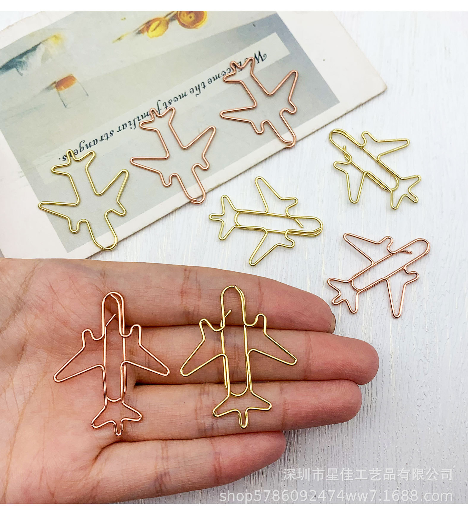 星佳メーカー創意交通機関飛行機クリップ異形クリップメッキ金色ブックマークファイルホルダー