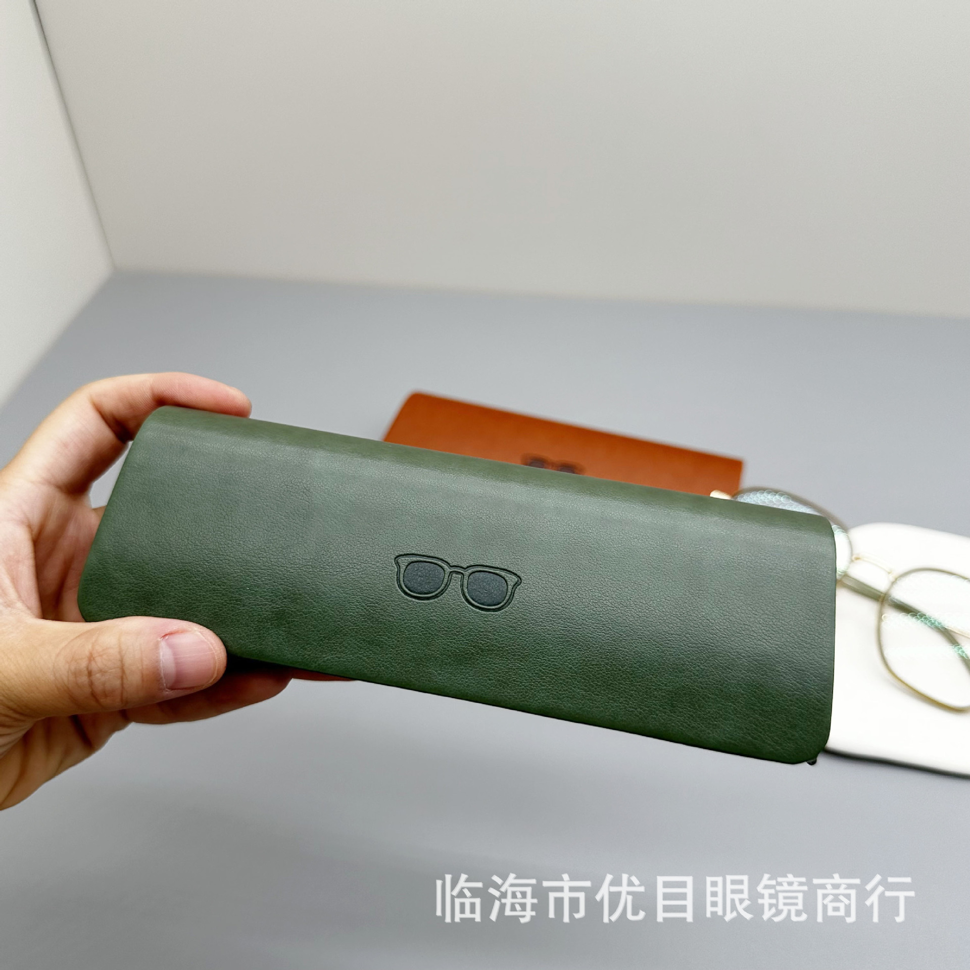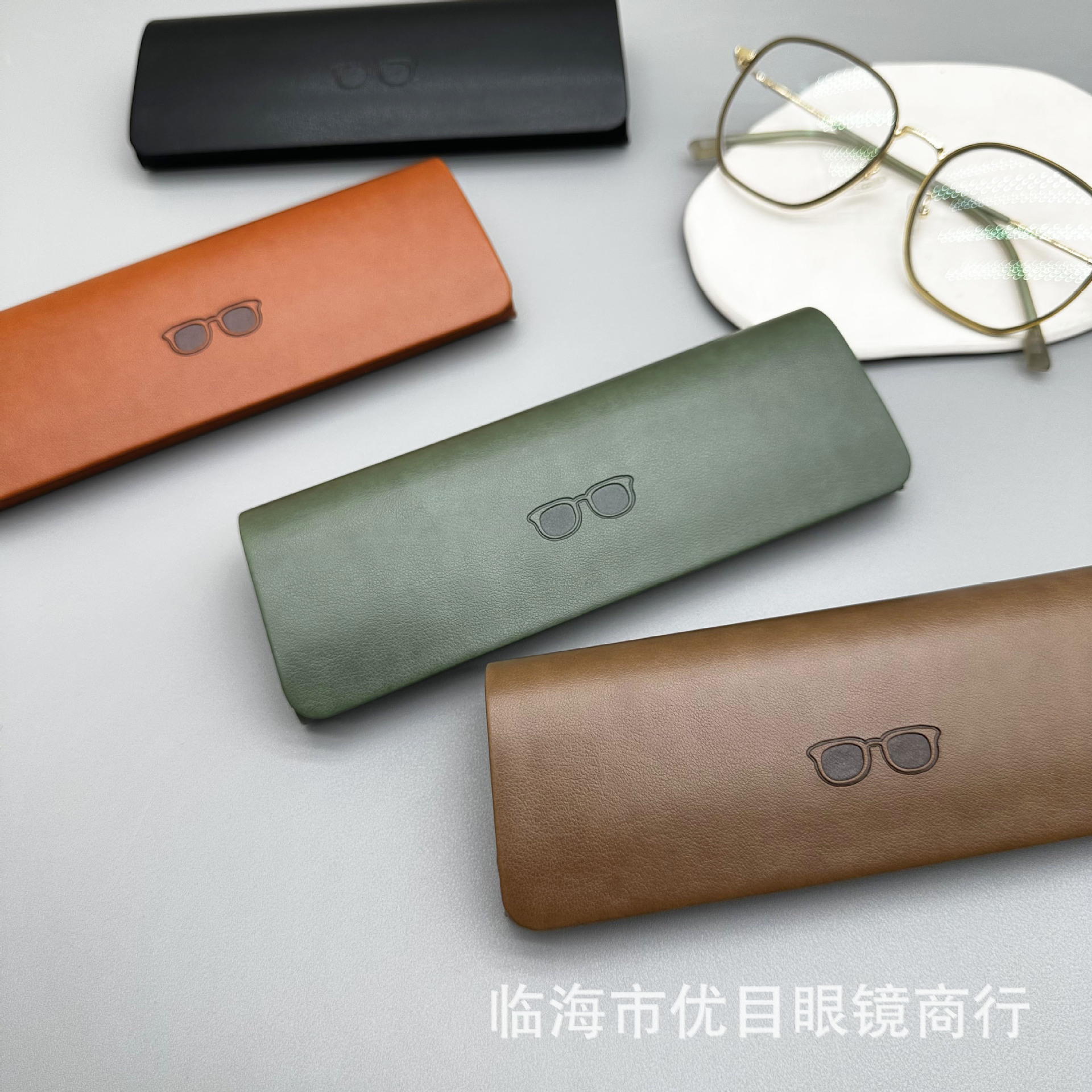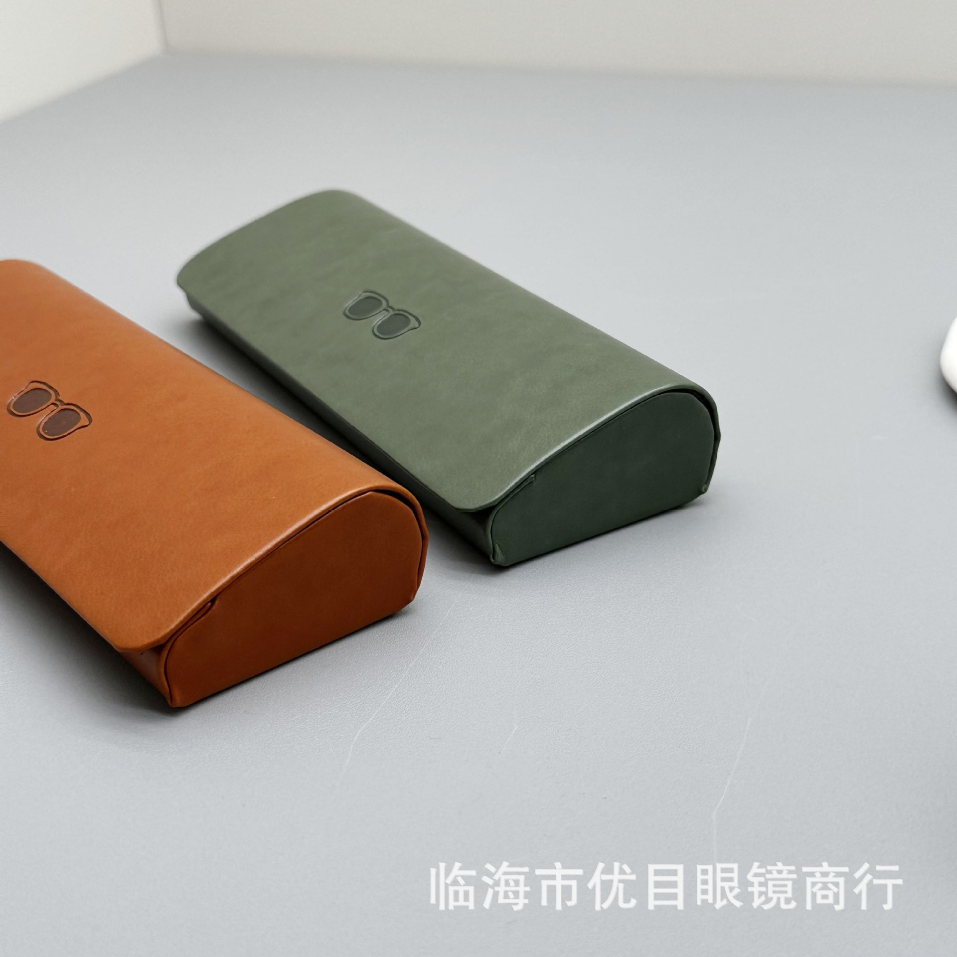 新款压变高级感皮质手工眼镜盒 太阳镜近视镜盒 厂家批发可印logo