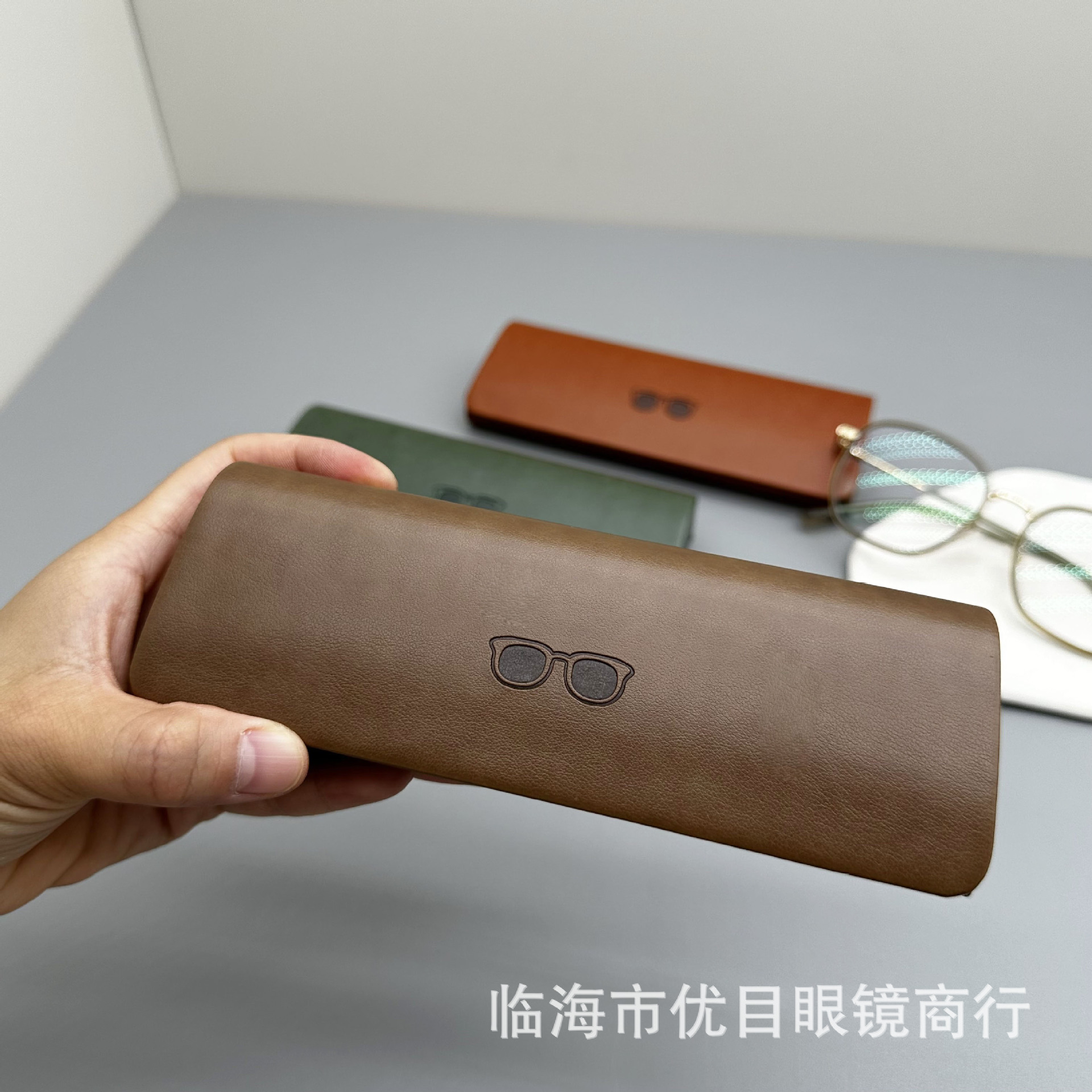 新商品卸売り直売メガネケースサングラスケース抗圧皮質高級感近視メガネケースロゴ