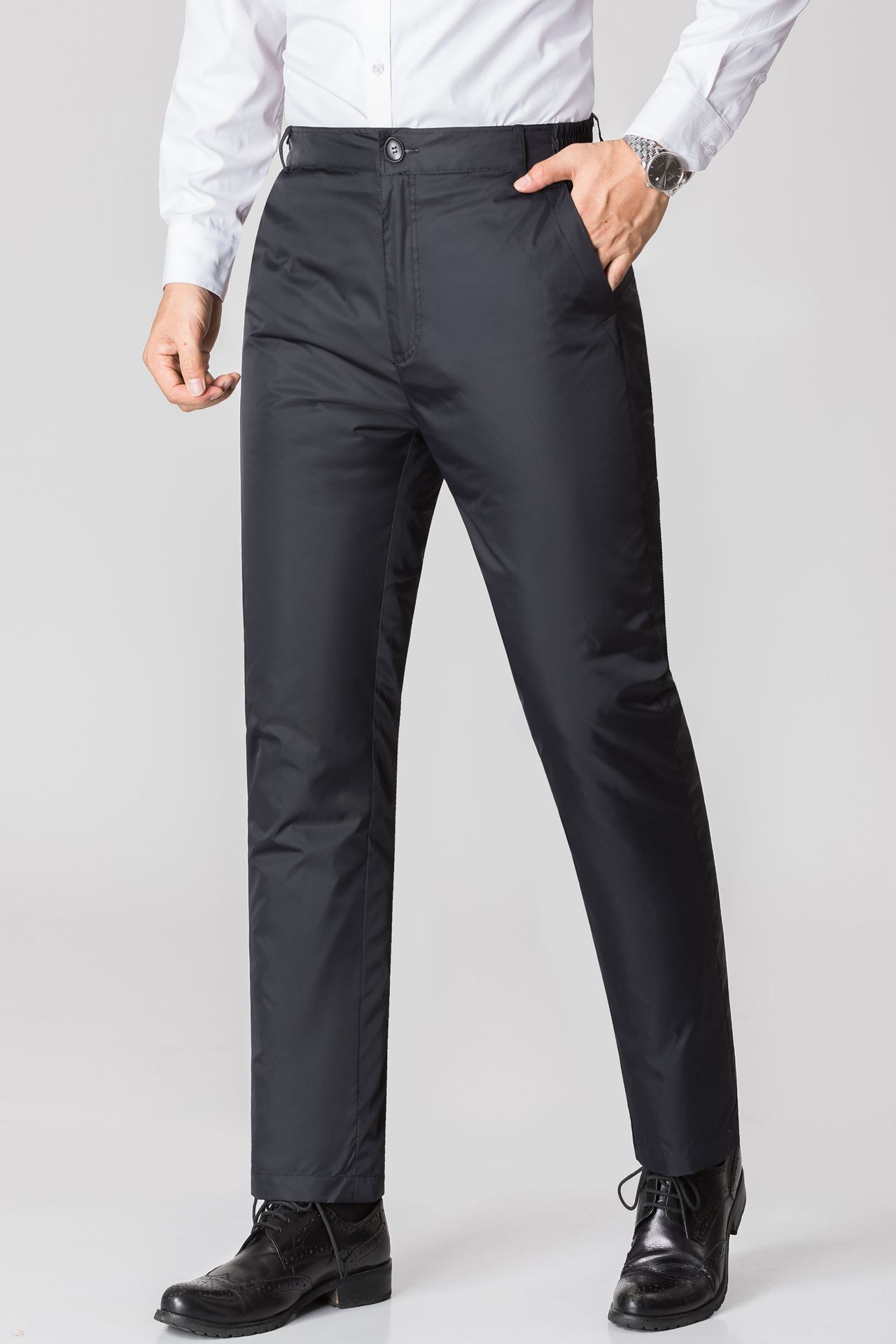 冬の新型中高年ダウンパンツ男性の内外はハイウエストで保温防風長ズボンメーカー直販