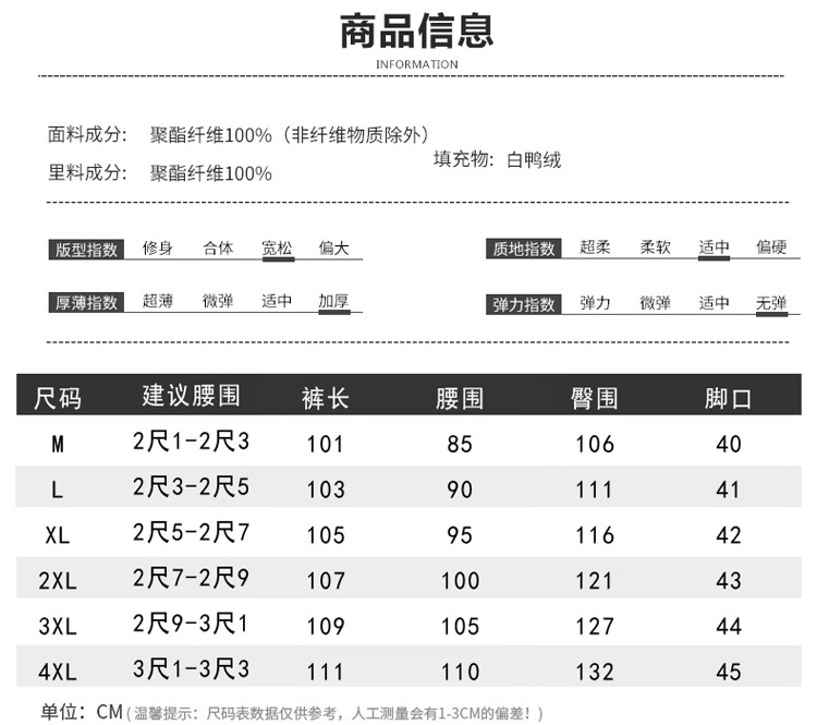 2024年国境を越えたダウンパンツ男性90白鴨絨毛秋冬戸外防風防水保温ファッションカジュアルパンツ