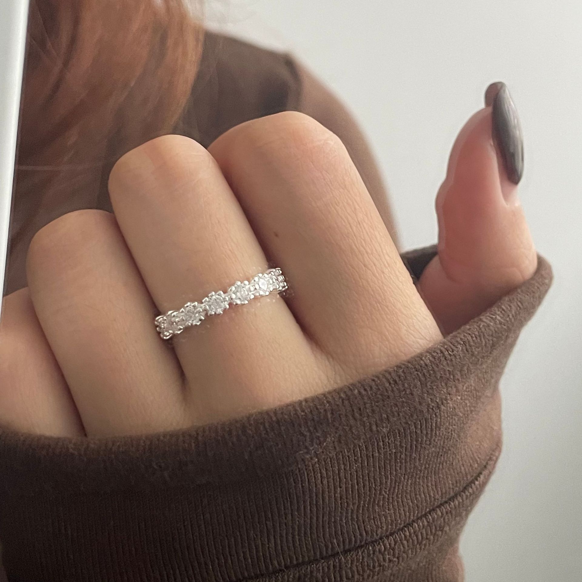サイナ925銀韓国版ドリルキラキラジルコニウム指輪シンプルなファッション畳イン風閉口リング銀飾り卸売り