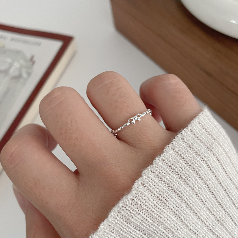 サイナの実写シンプルな百合S925純銀の蝶結びの指輪の女性は優しくて小さくて甘い透かし彫りの指の指輪です。