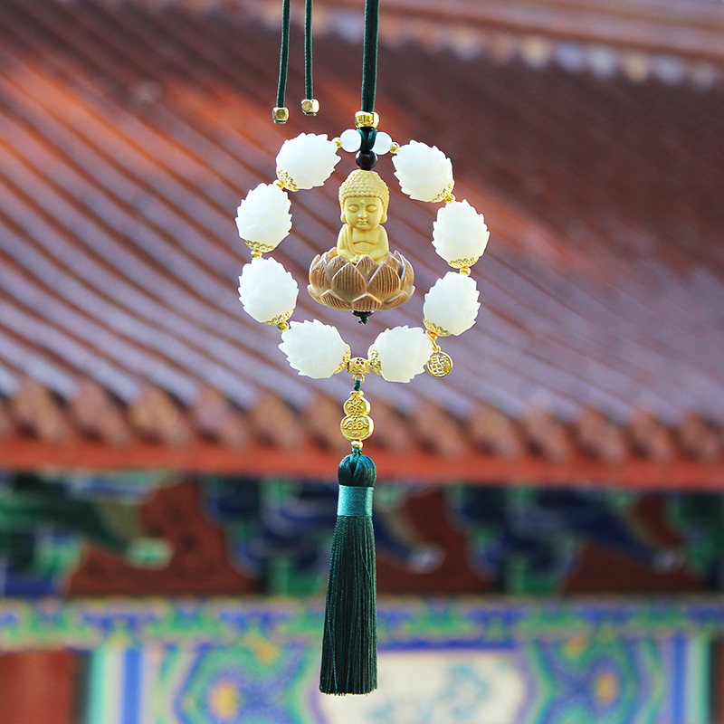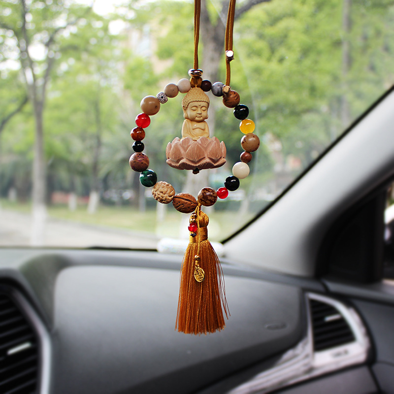 国風の黄楊の木の小さい仏陀は幸運を飾って連続して自動車の掛け物の車載の菩提の蓮のバックミラーの装飾用品を飾ります。
