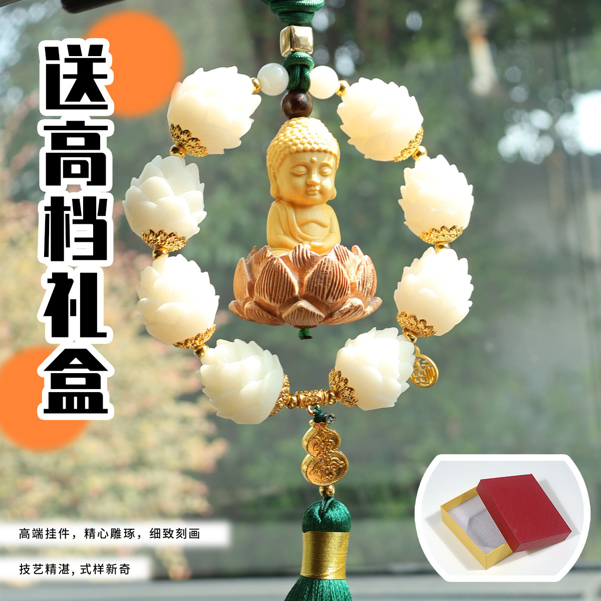 寺庙同款莲花挂件汽车后视镜小佛坐莲装饰车内挂饰礼盒装出行配饰