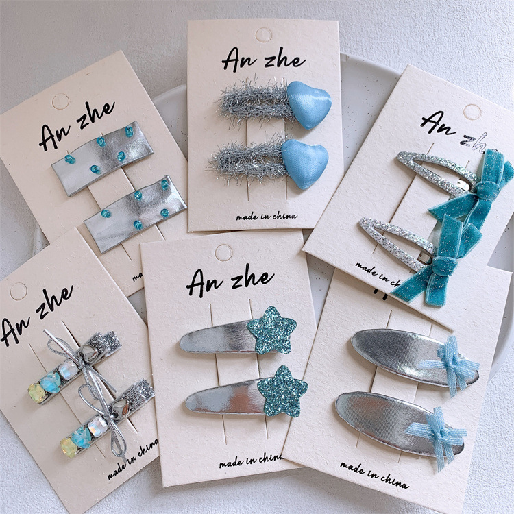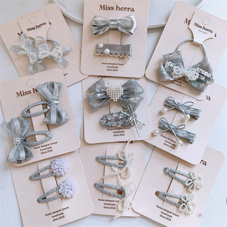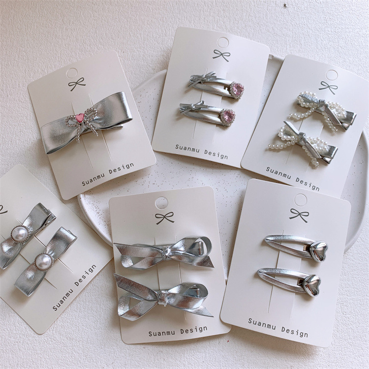新しい銀色系の子供の皮質の蝶結びのヘアピンの女の子の前髪の砕毛bbクリップの赤ちゃんのペアのサイドのヘアピン