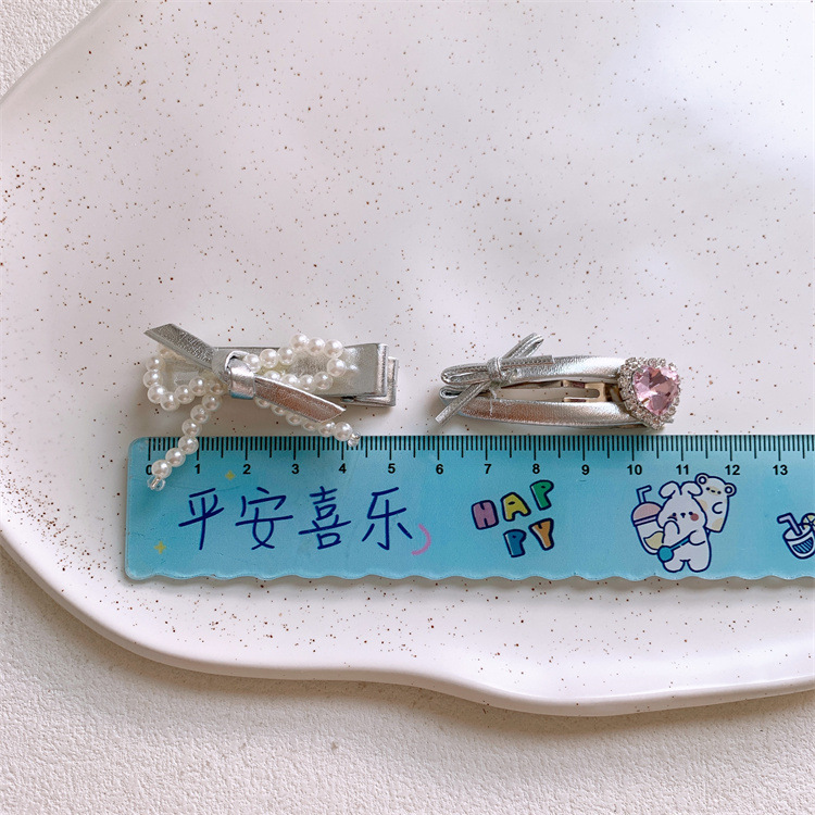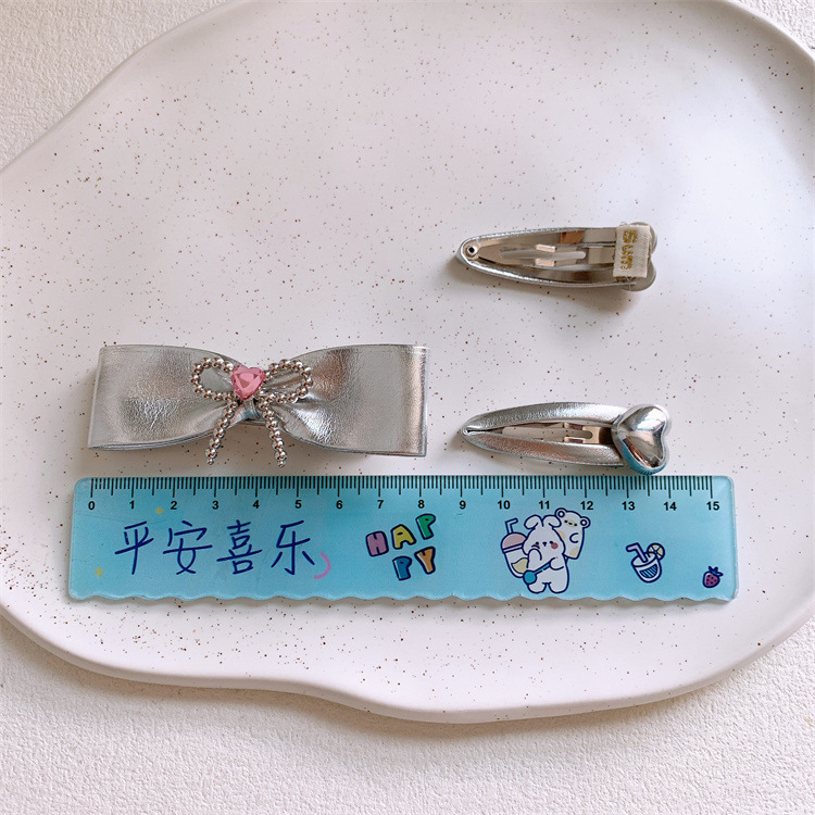 銀色の皮質のアイロン掛けの愛の蝶結びの子供の髪は女の子の側の前髪を挟みます。