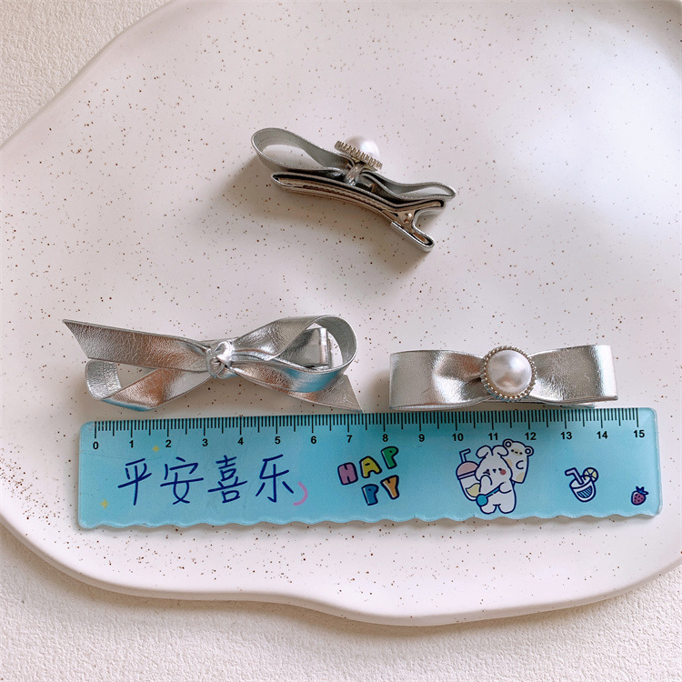 子供の真珠の銀色の蝶結びのヘアピンの前髪の側の端の砕毛のbbクリップの女の子は髪の毛の筋の髪のひもを刺します。