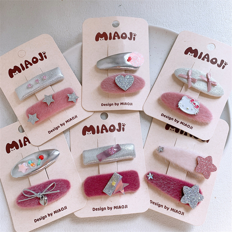 秋冬儿童五角星爱心毛绒发夹卡通小猫发卡小女孩侧边刘海碎发BB夹