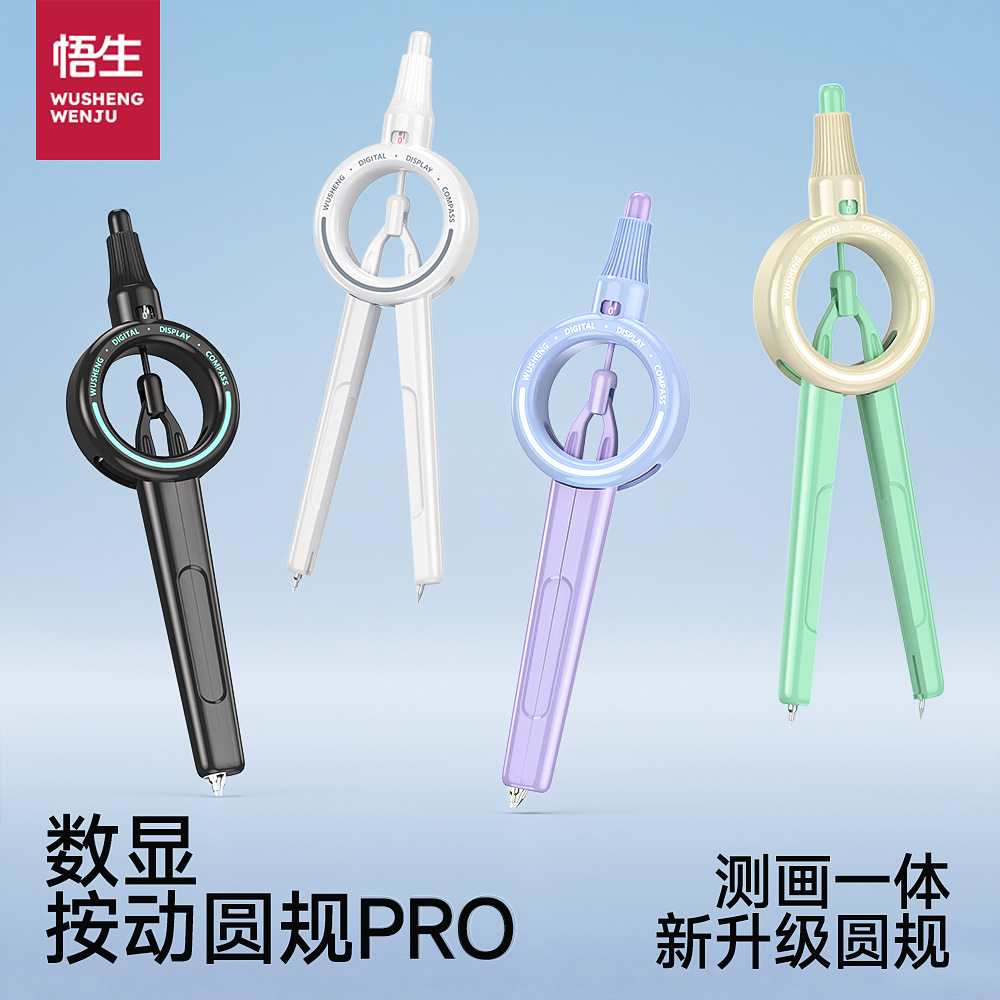 悟生 数显按动圆规pro小学生考试专用初中生升级二代黑科技圆规