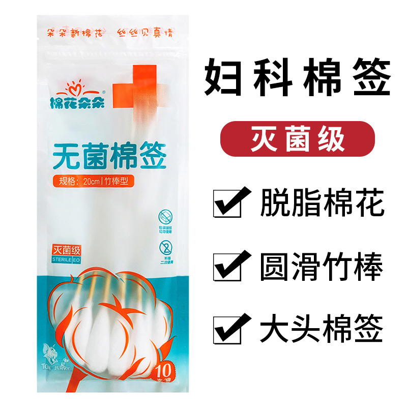 綿の輪の20cmの大きい婦人科の綿棒の単頭の竹の棒の10本は無菌の医療の綿棒を詰めて袋の口から密封します。