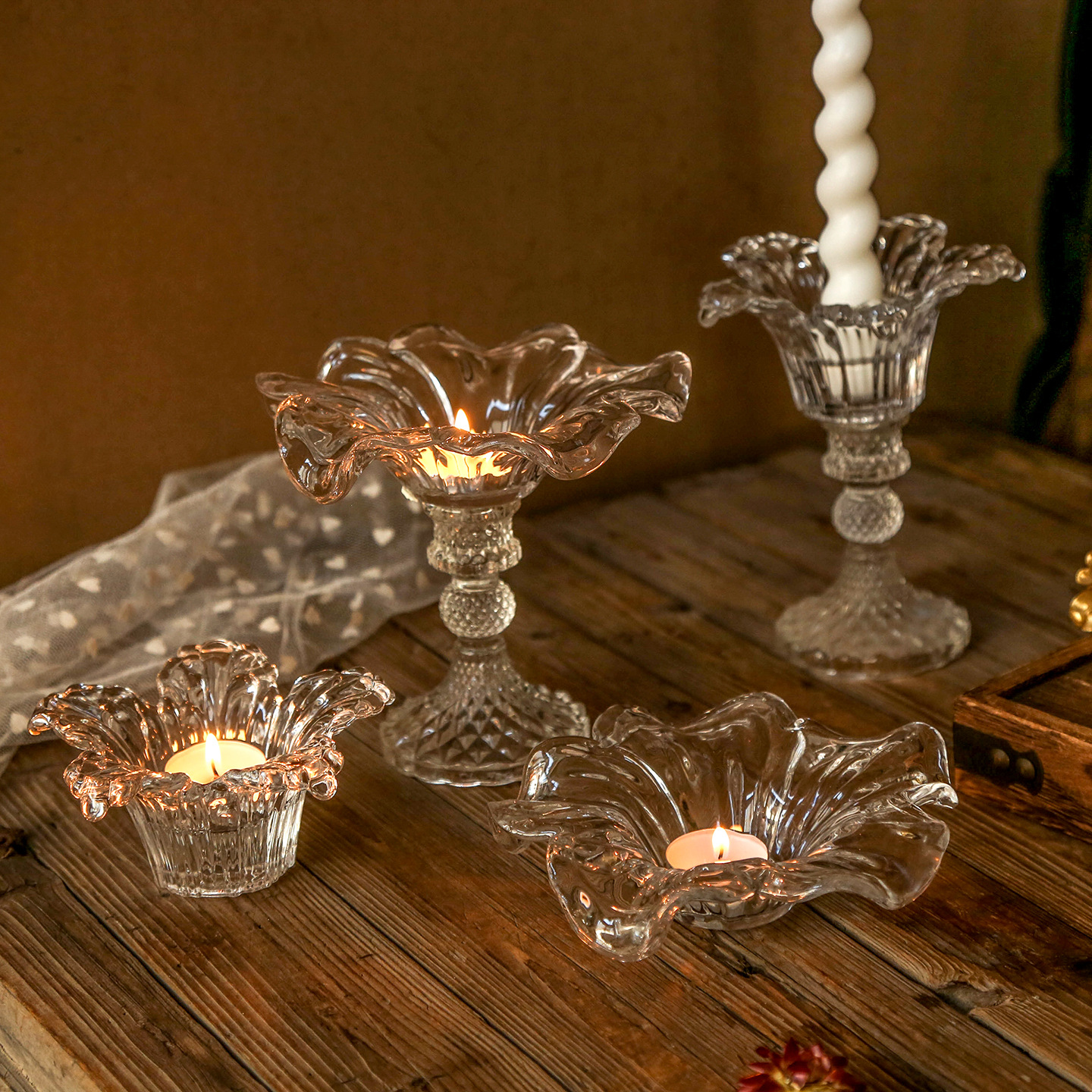 轻奢玻璃花朵烛台民宿酒店装饰餐厅烛光晚餐浪漫摆件蜡烛托台台座