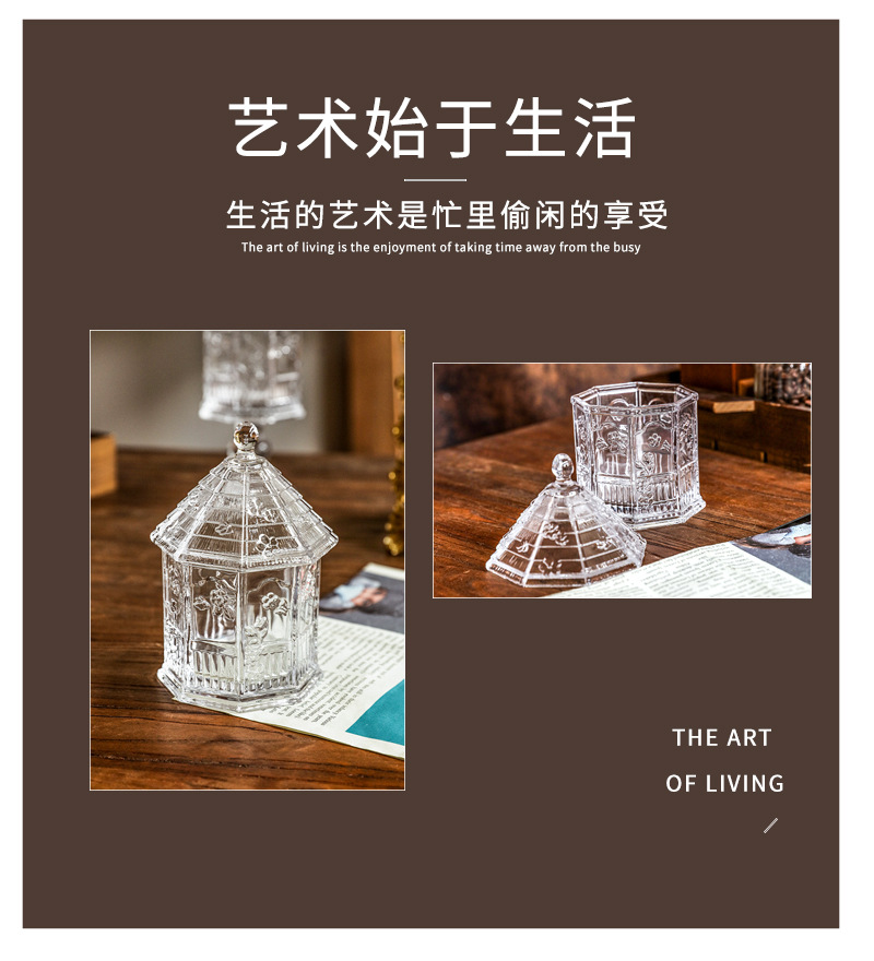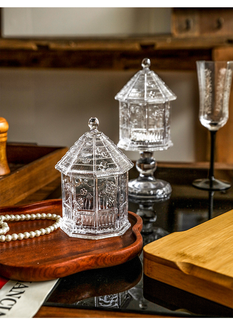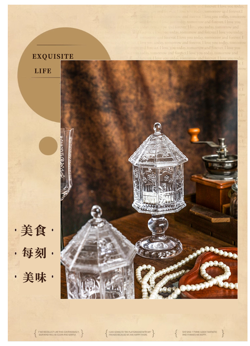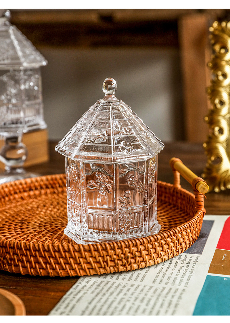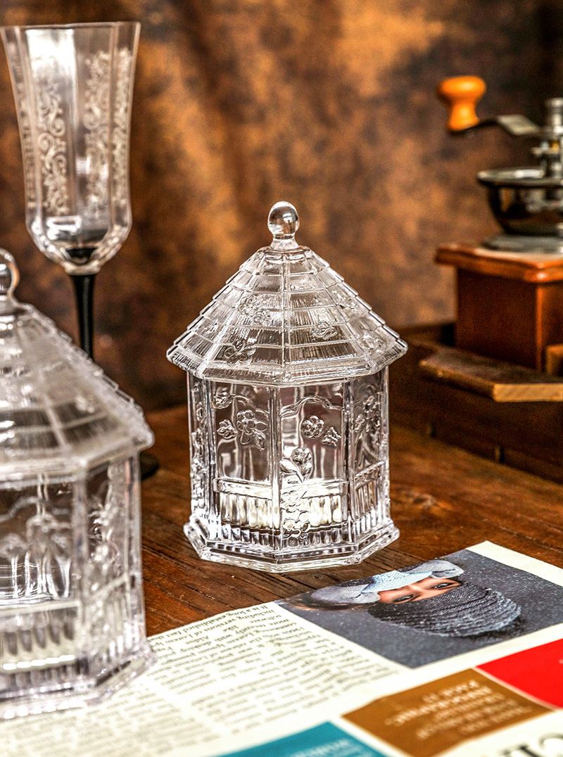 緑典ヨーロッパ式レトロなレリーフ蝶花ガラス蓋付き貯蔵タンク雑穀タンク収納タンク台所用品