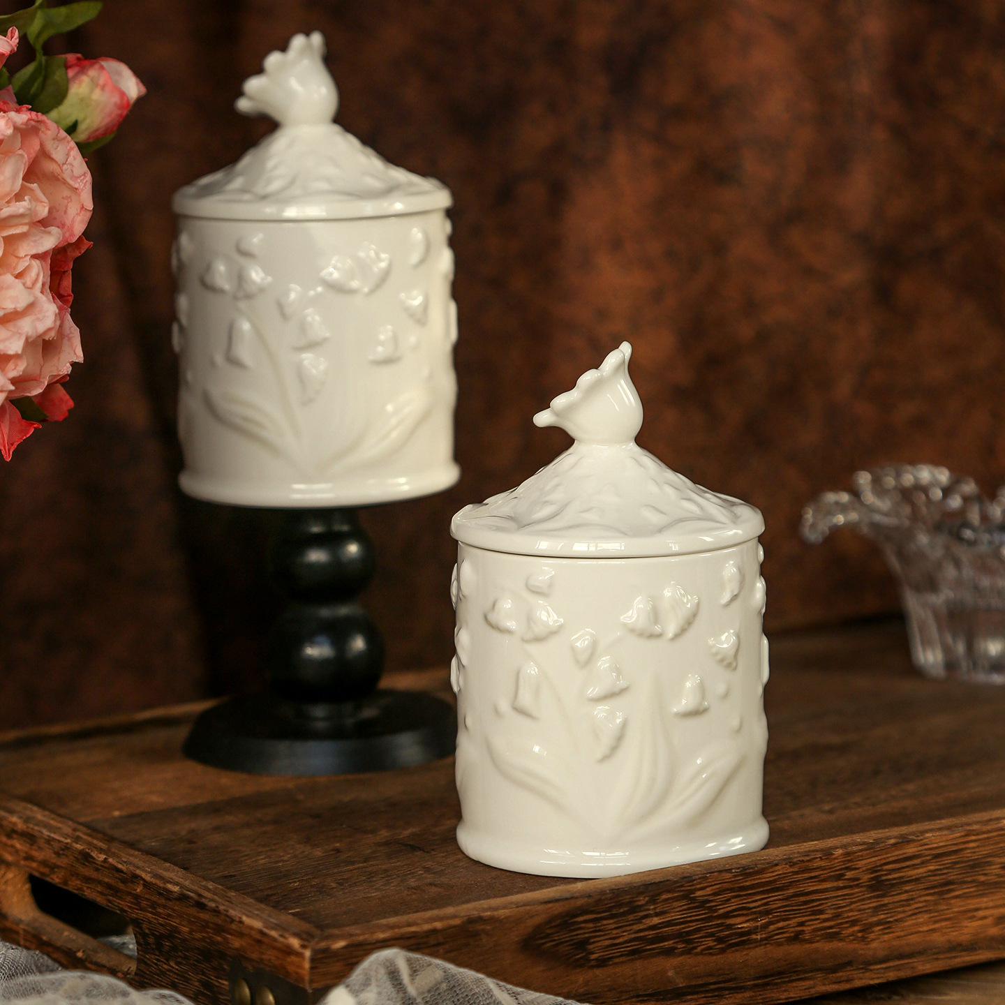 法式陶瓷储物罐装饰摆件带盖收纳罐高级感首饰罐糖罐食品茶叶罐子