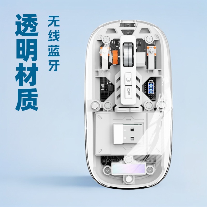 2025爆款透明无线鼠标充电带电量显示发光双模蓝牙鼠标静音现货